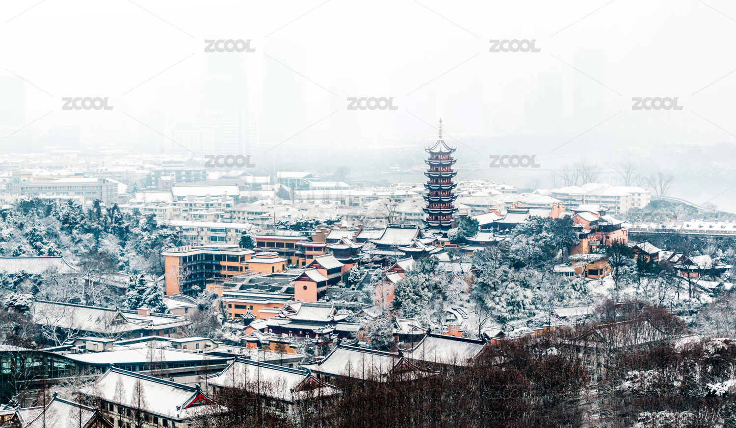 航拍,冬天,雪景,观音山,大明寺,栖灵塔,湖,扬州,佛教,寺庙