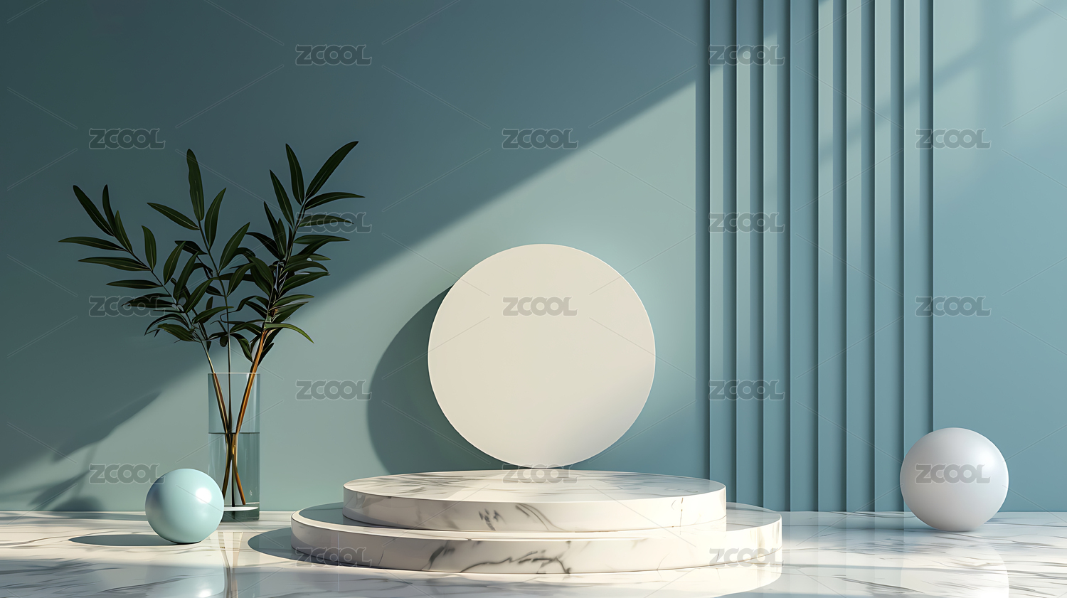 室内,绿植,木质,展台,光影,效果,简约,风格,自然,氛围