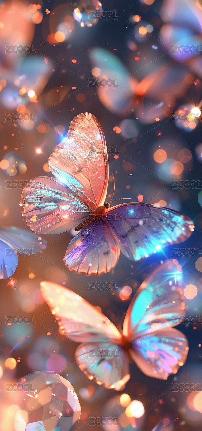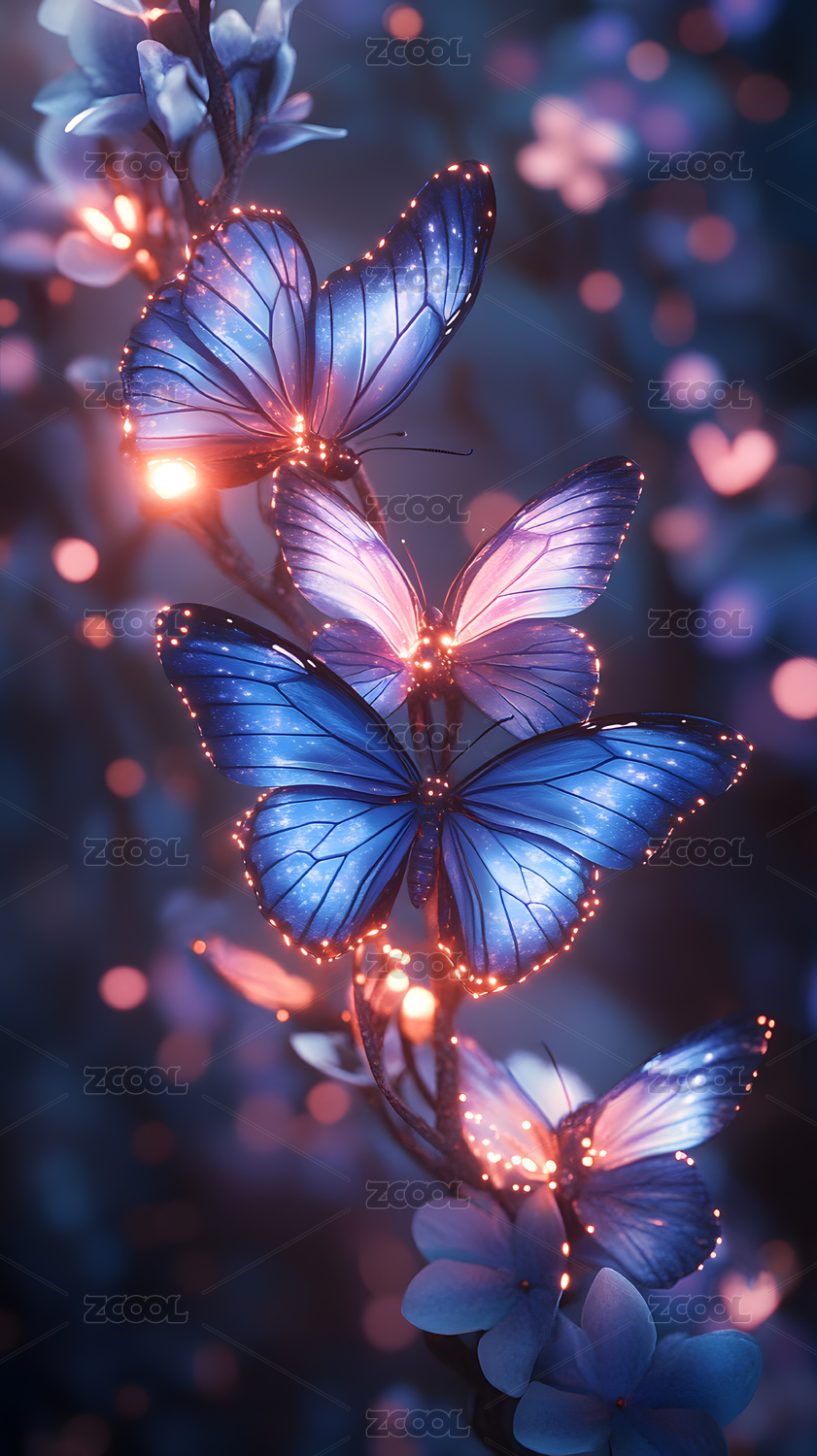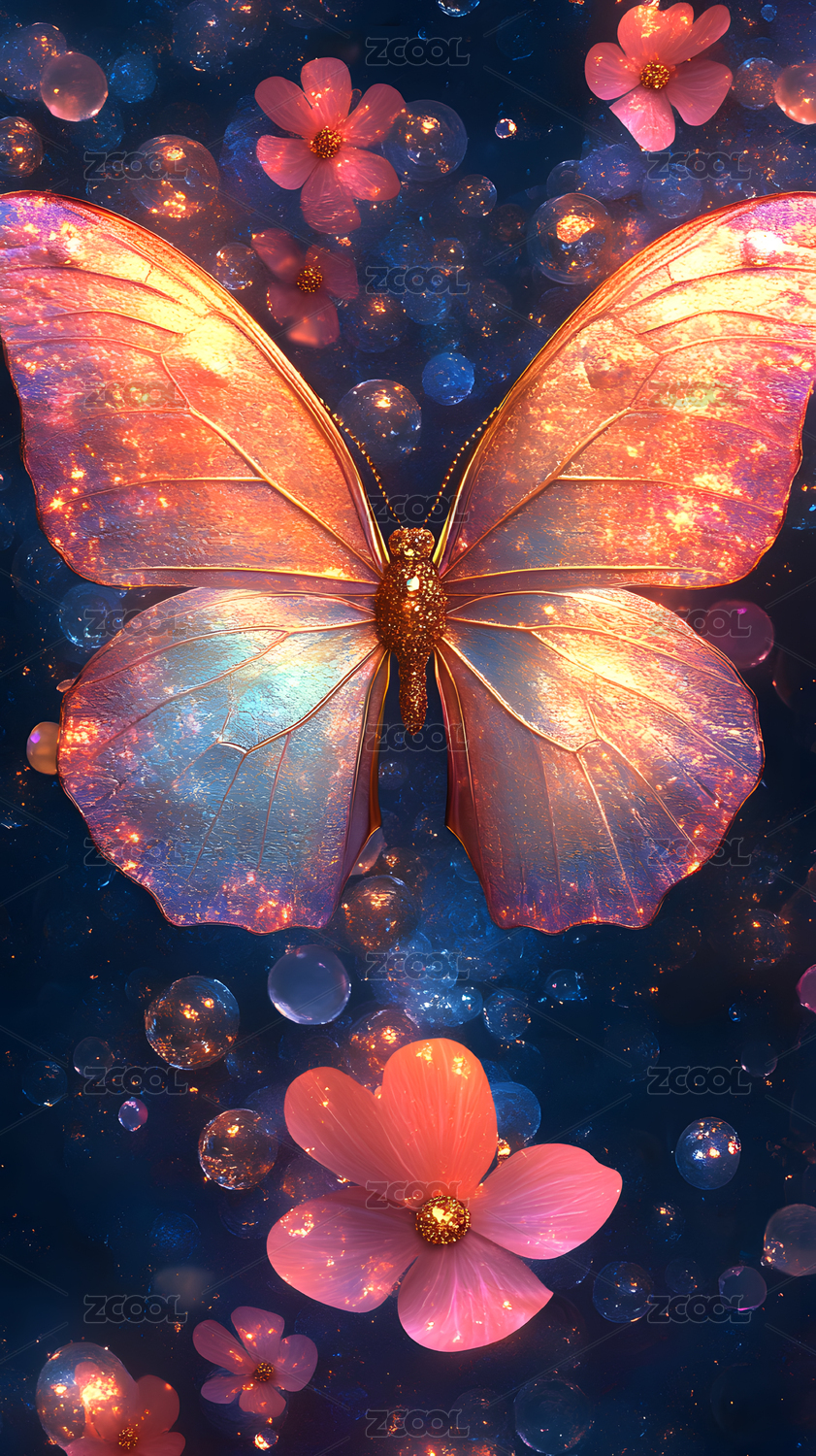 梦幻浪漫唯美展翅飞翔的魔法蝴蝶图案印花