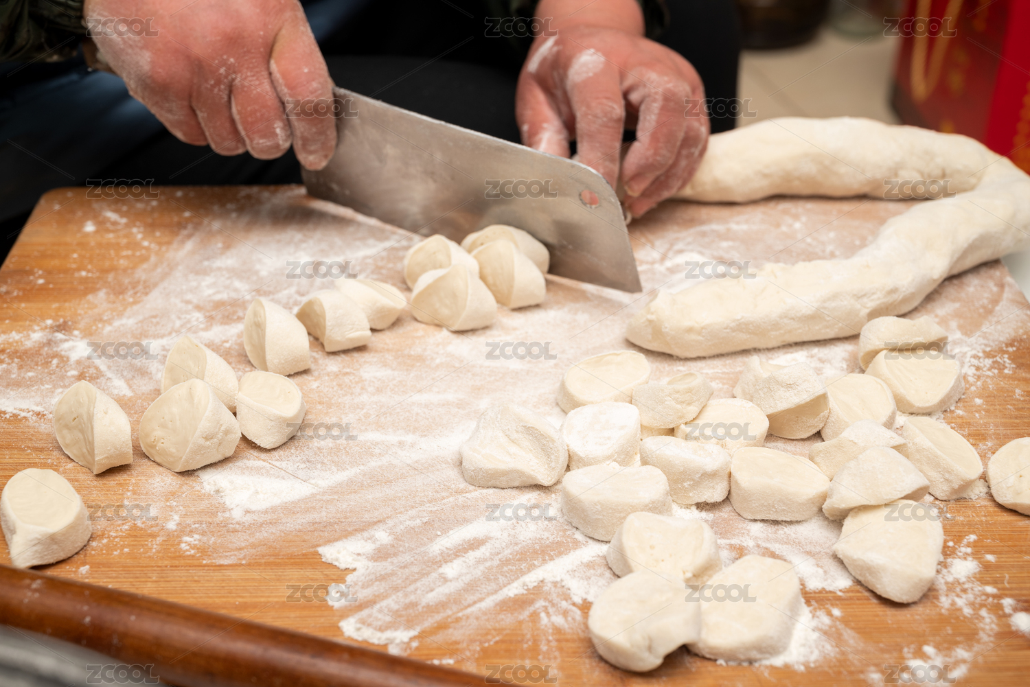 中国节日前擀饺子皮准备包饺子