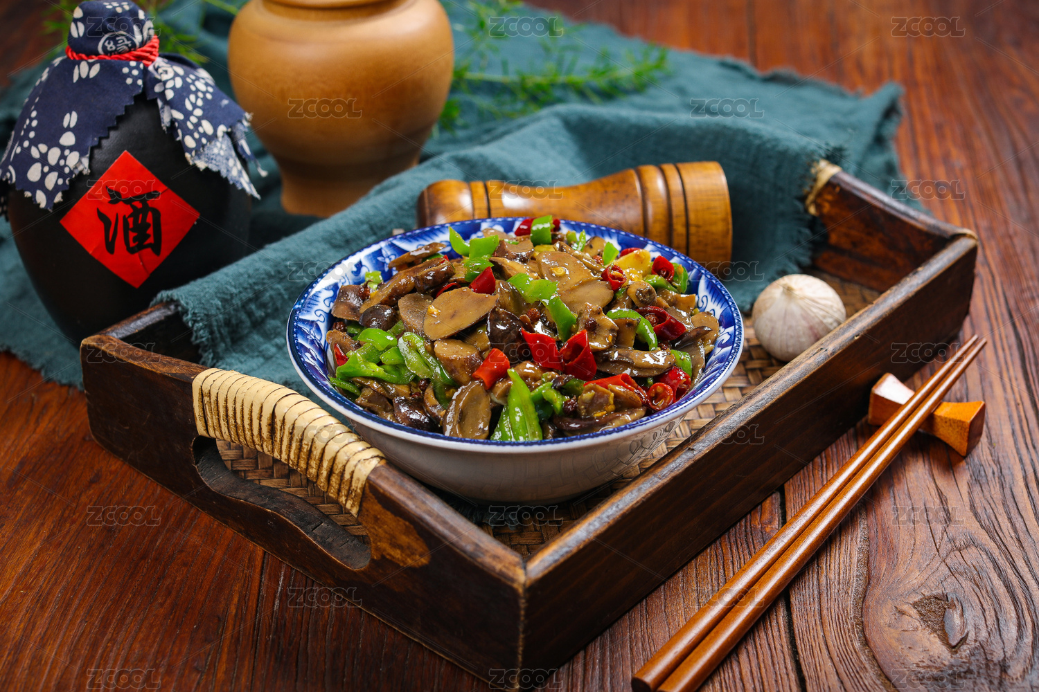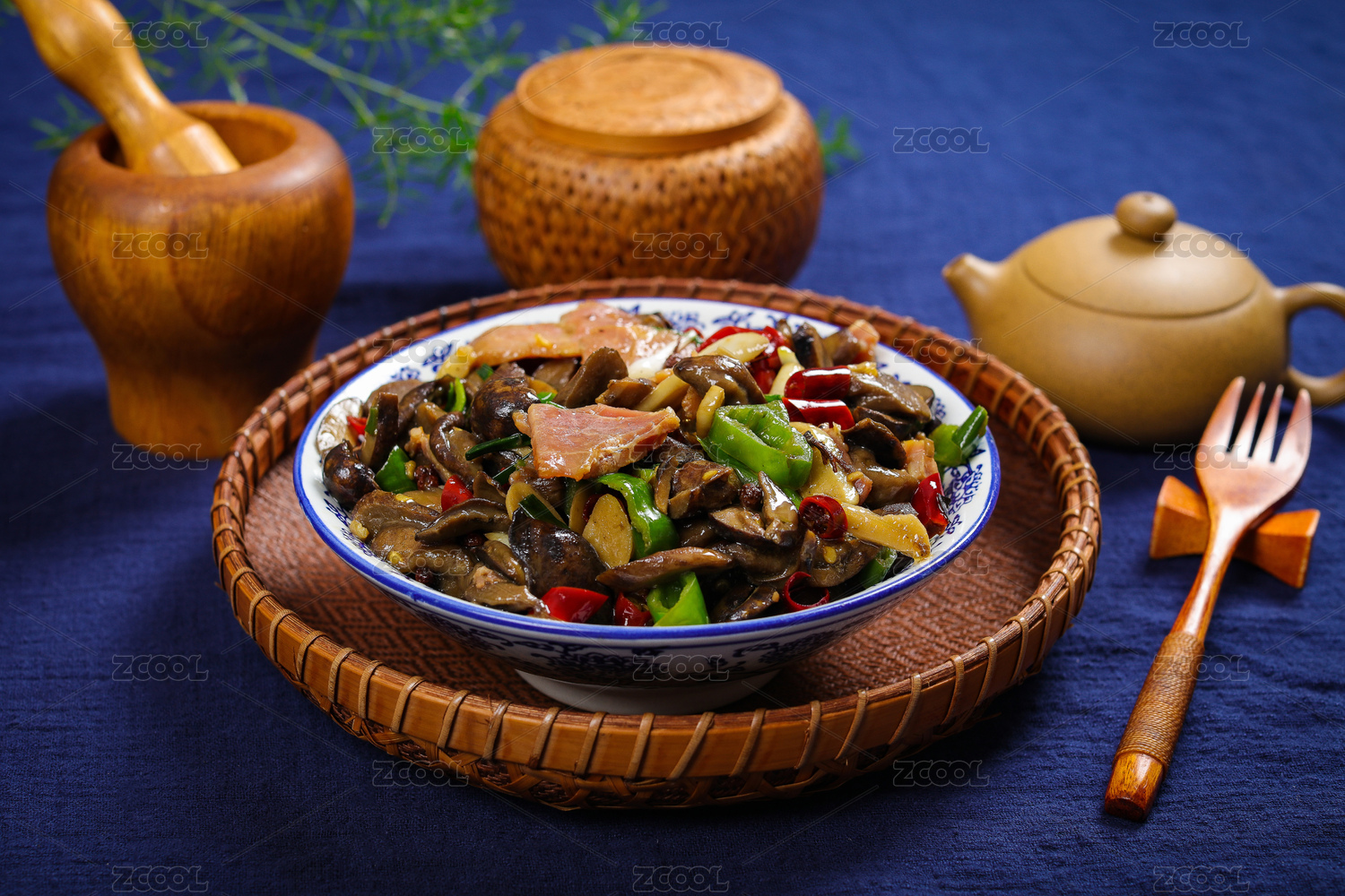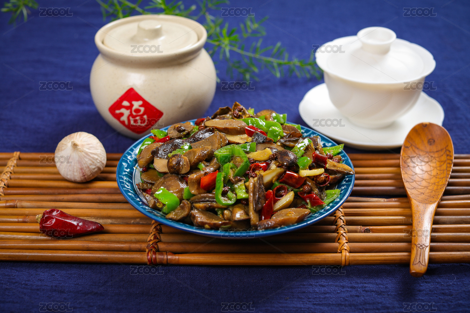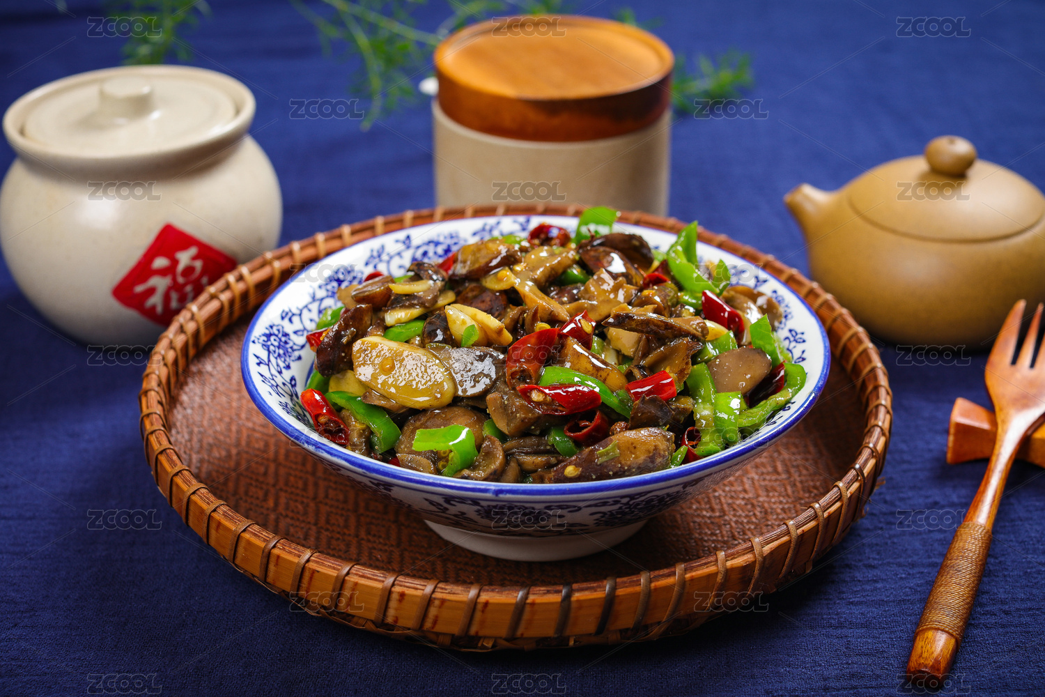 香辣美味特色菜辣椒炒牛肝菌见手青