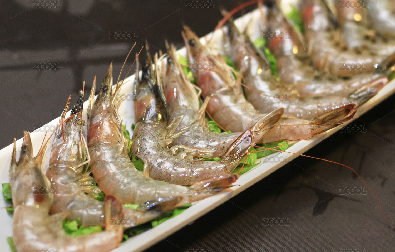 美味营养的火锅菜基围虾整齐的摆放在长碟中