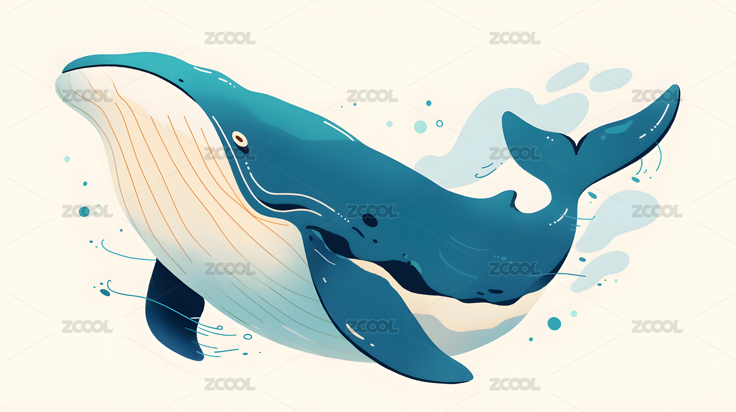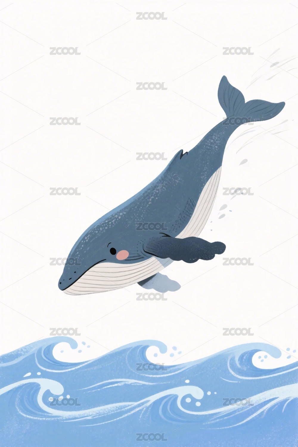 卡通鲸鱼跳水插画