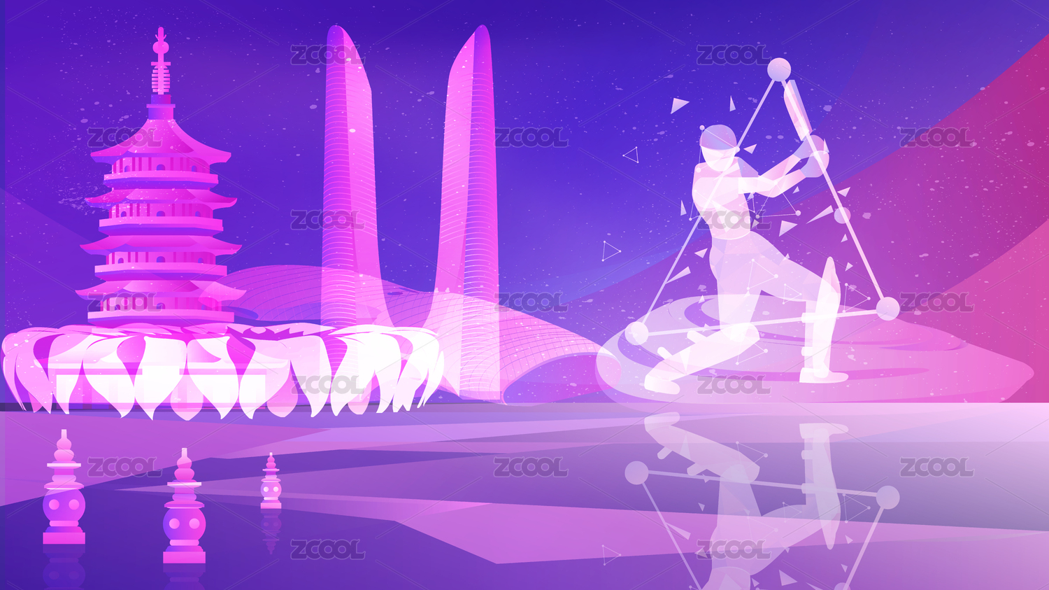 杭州亚运会击剑矢量插画
