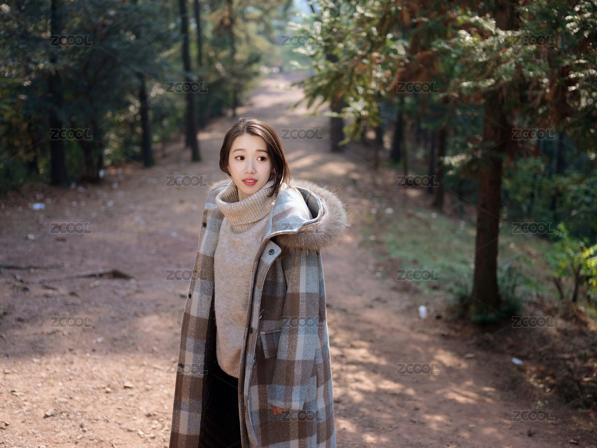秋天,女性,女孩,人,一个人,户外,森林,湖边,湖水,树叶