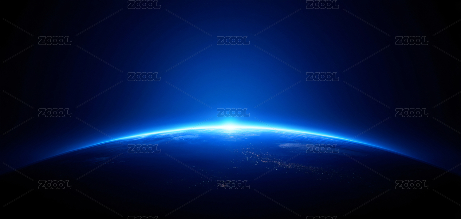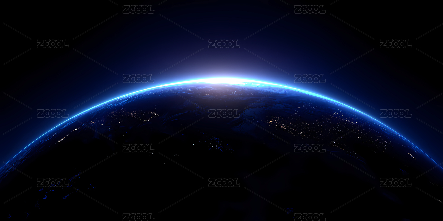地球夜景蓝色光晕环绕
