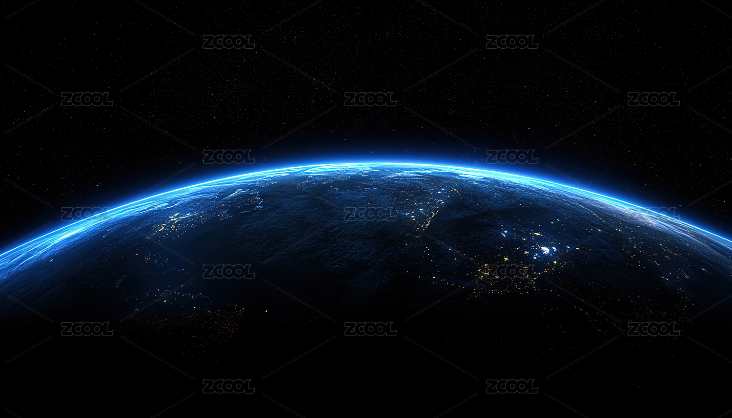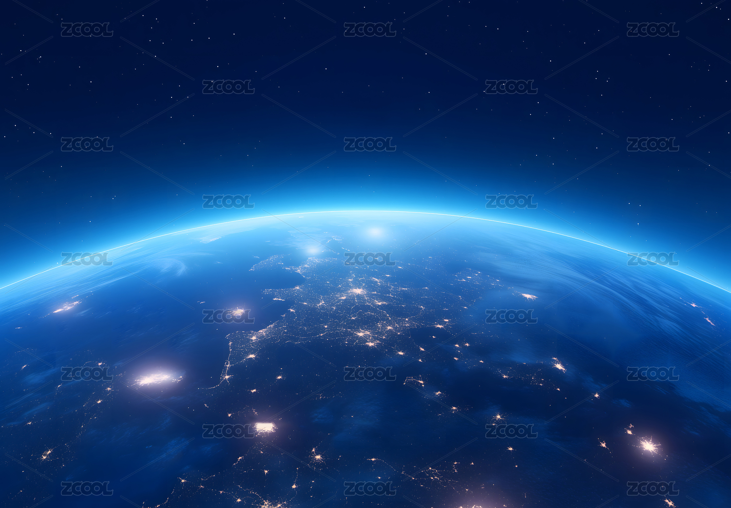 地球夜景与蓝色光晕
