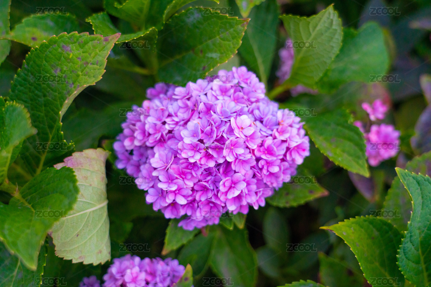 杭州临平公园紫色绣球花特写