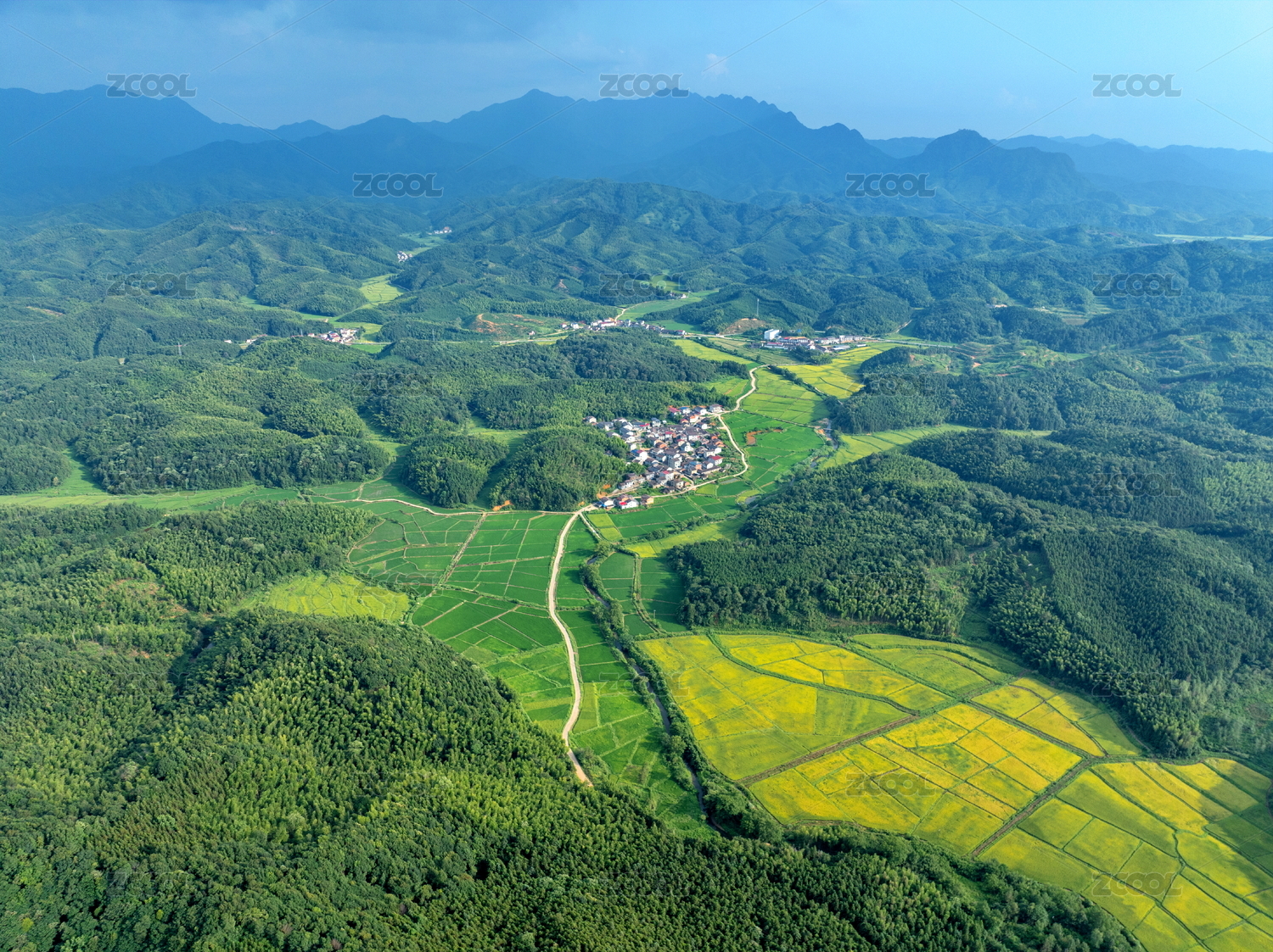 中国福建省顺昌县慈太村秋天稻田航拍风光