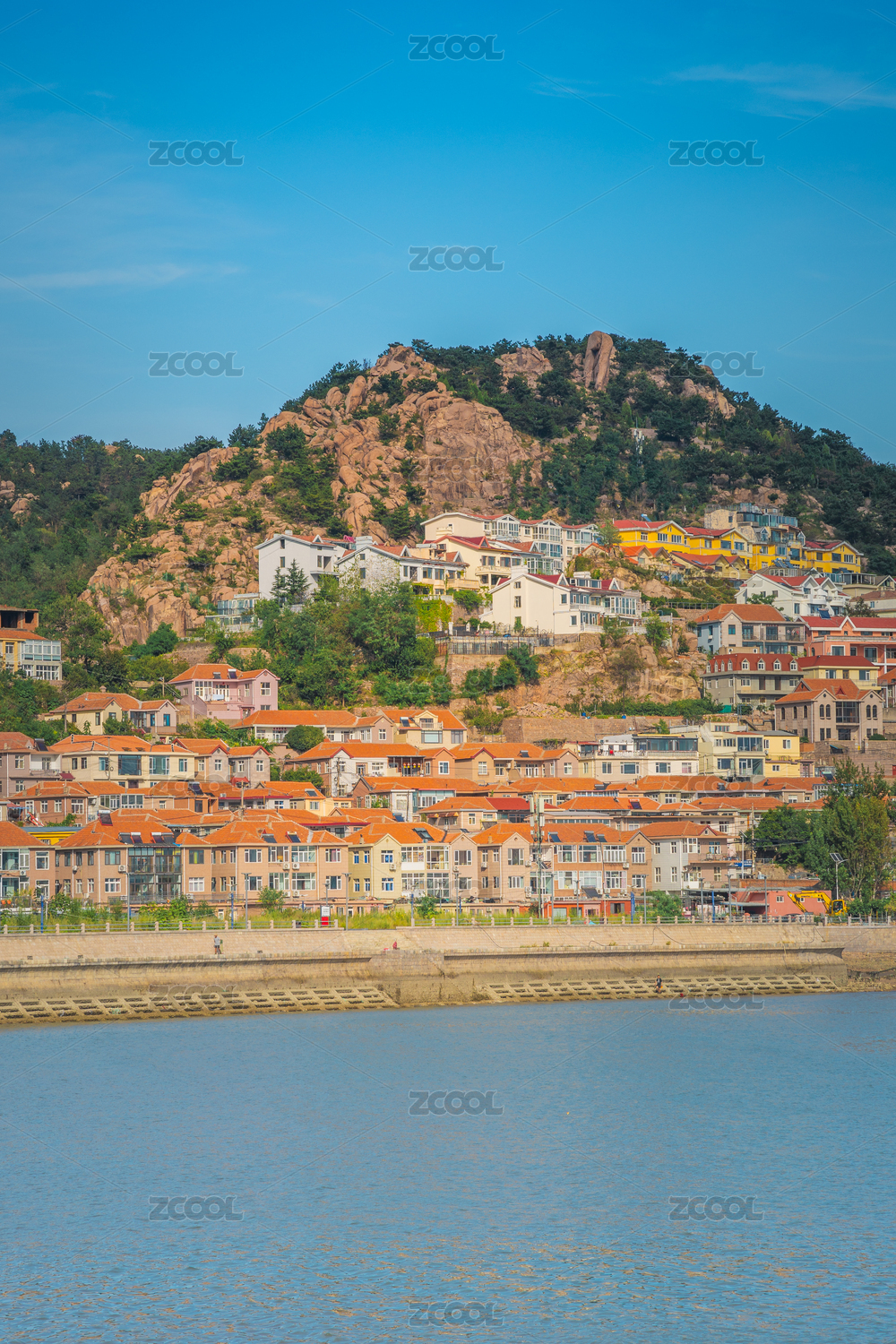 青岛沙子口广场海滨风景