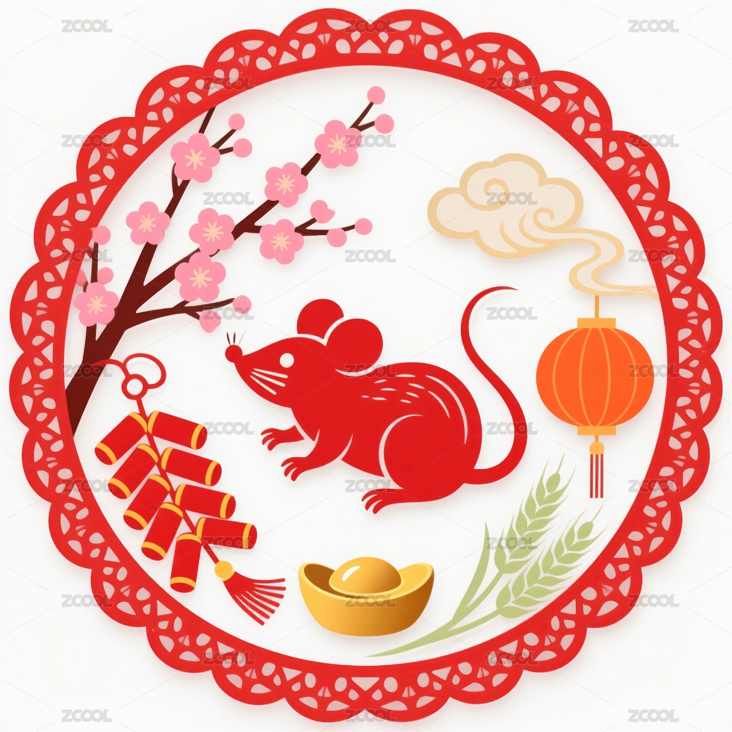 鼠年祥云包围的老鼠和福字