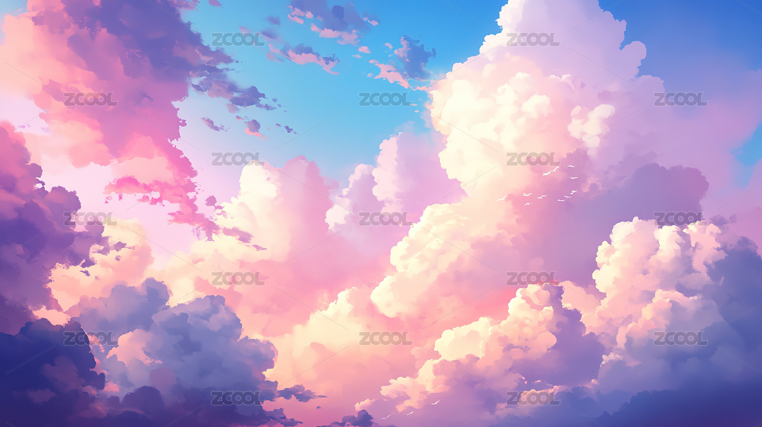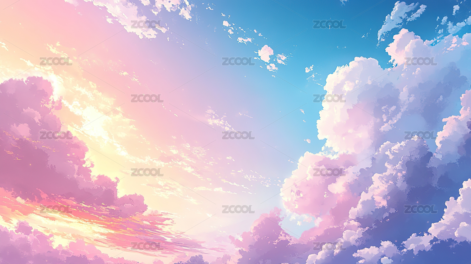 水彩风格抽象天空彩云PPT海报主视觉背景