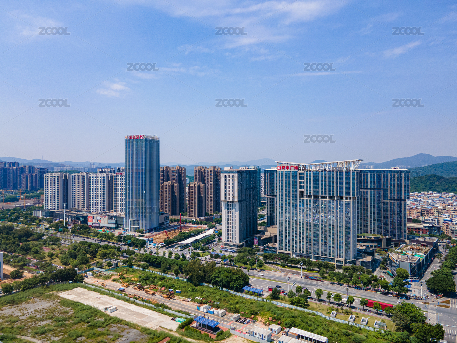 广州黄埔区萝岗香雪商业建筑群航拍