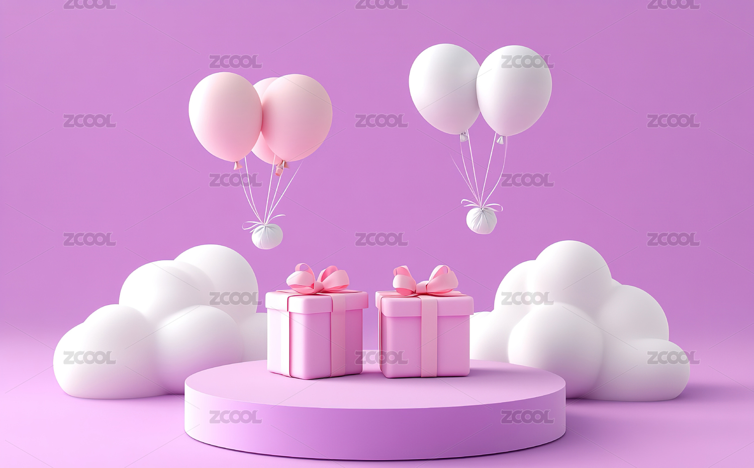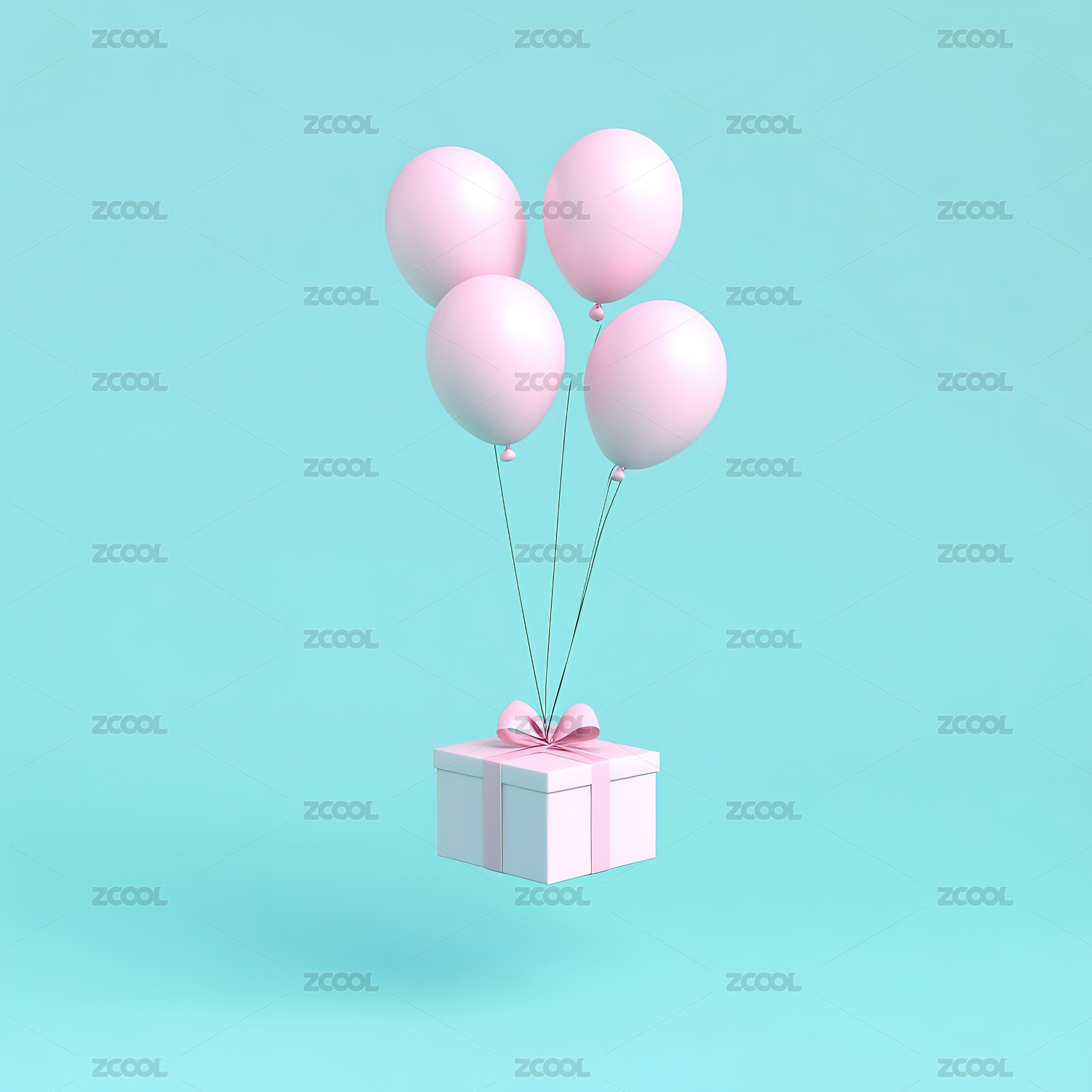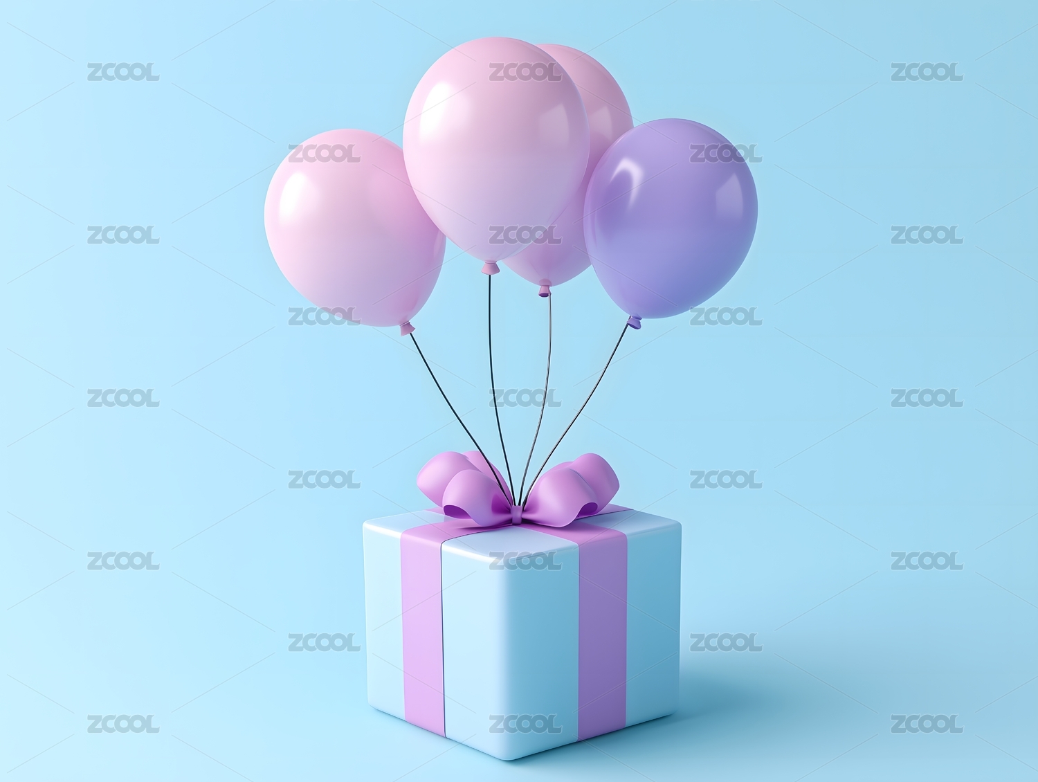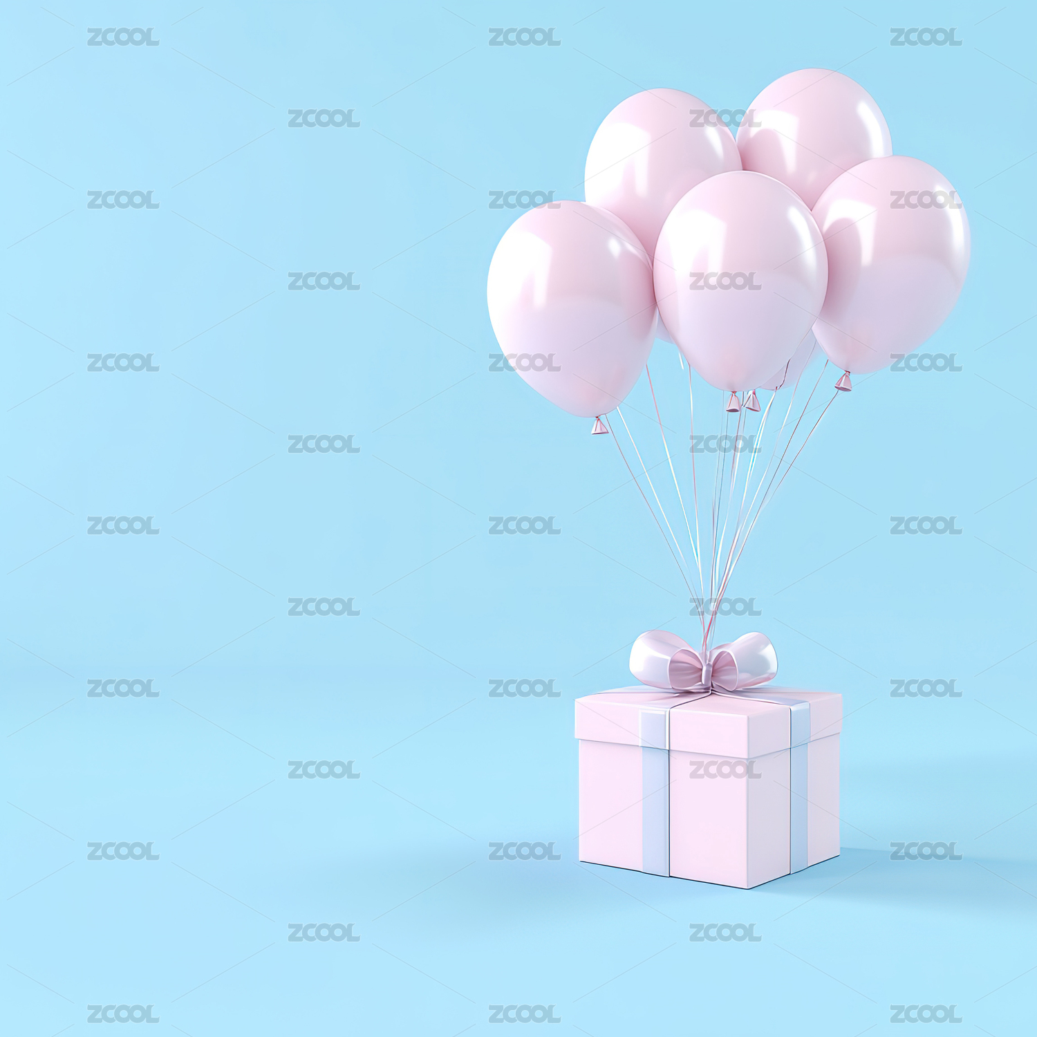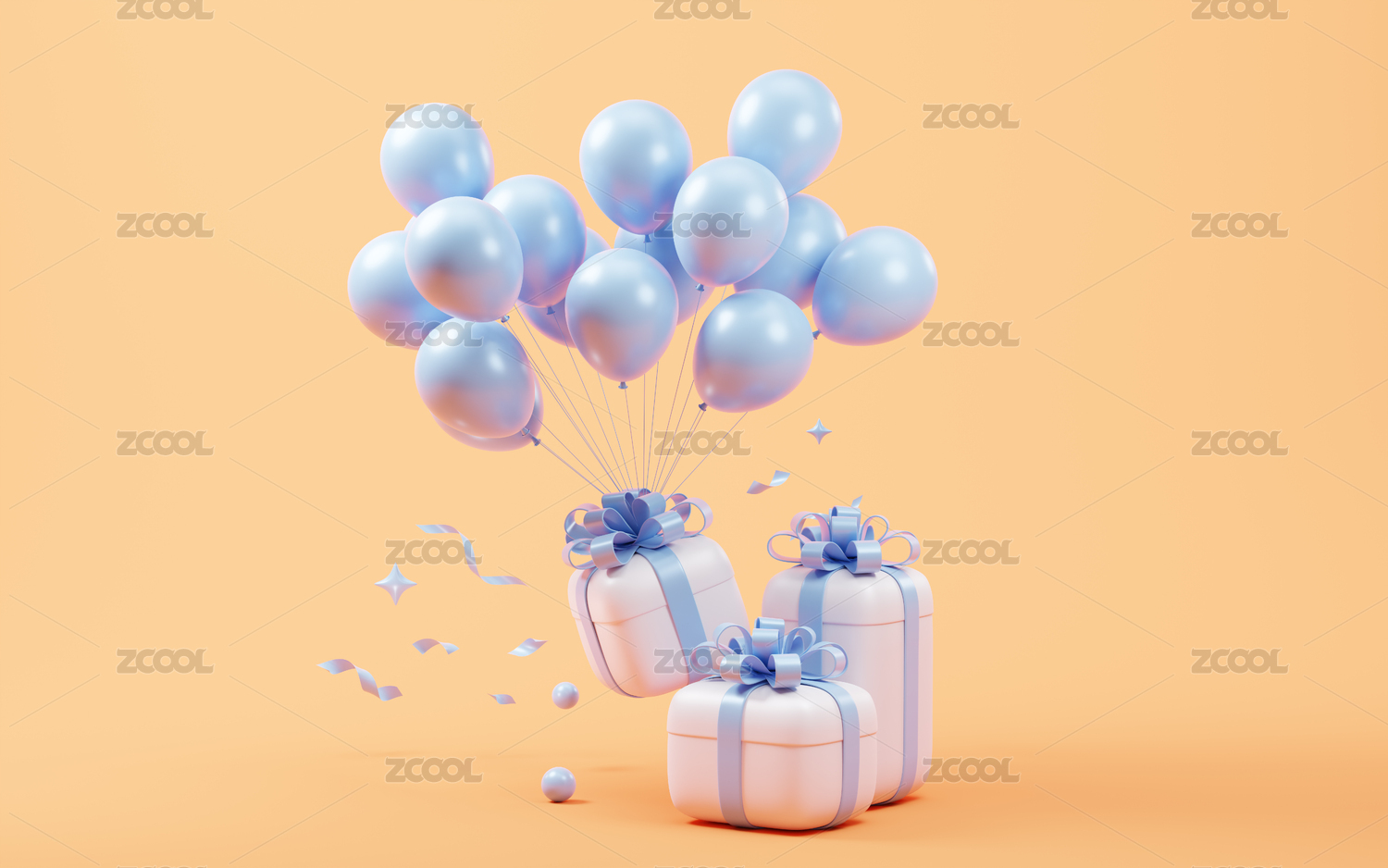 蓝色背景下的圣诞礼物和气球的特写镜头