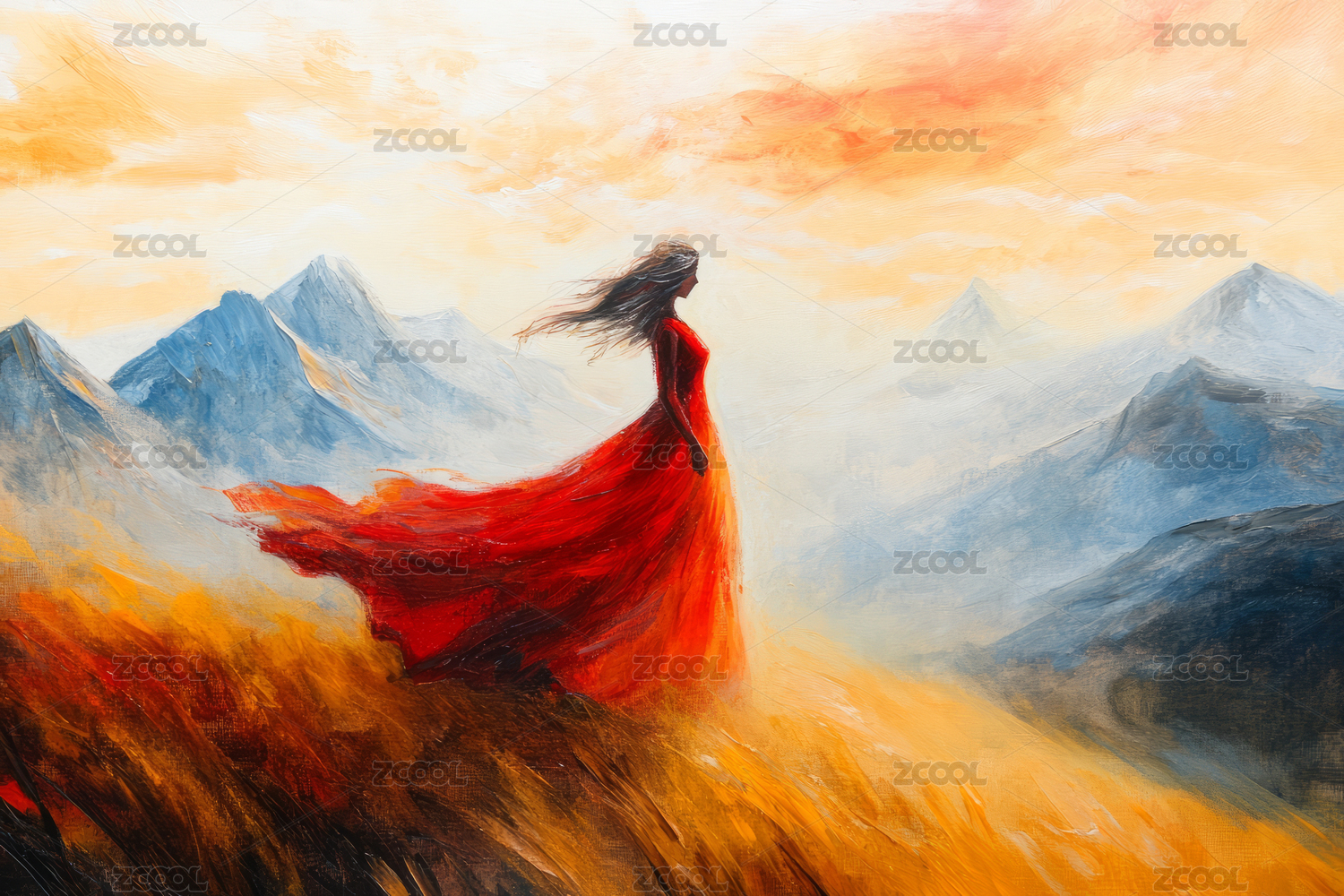 女将军从战场走来夕阳下红色盔甲唯美画面