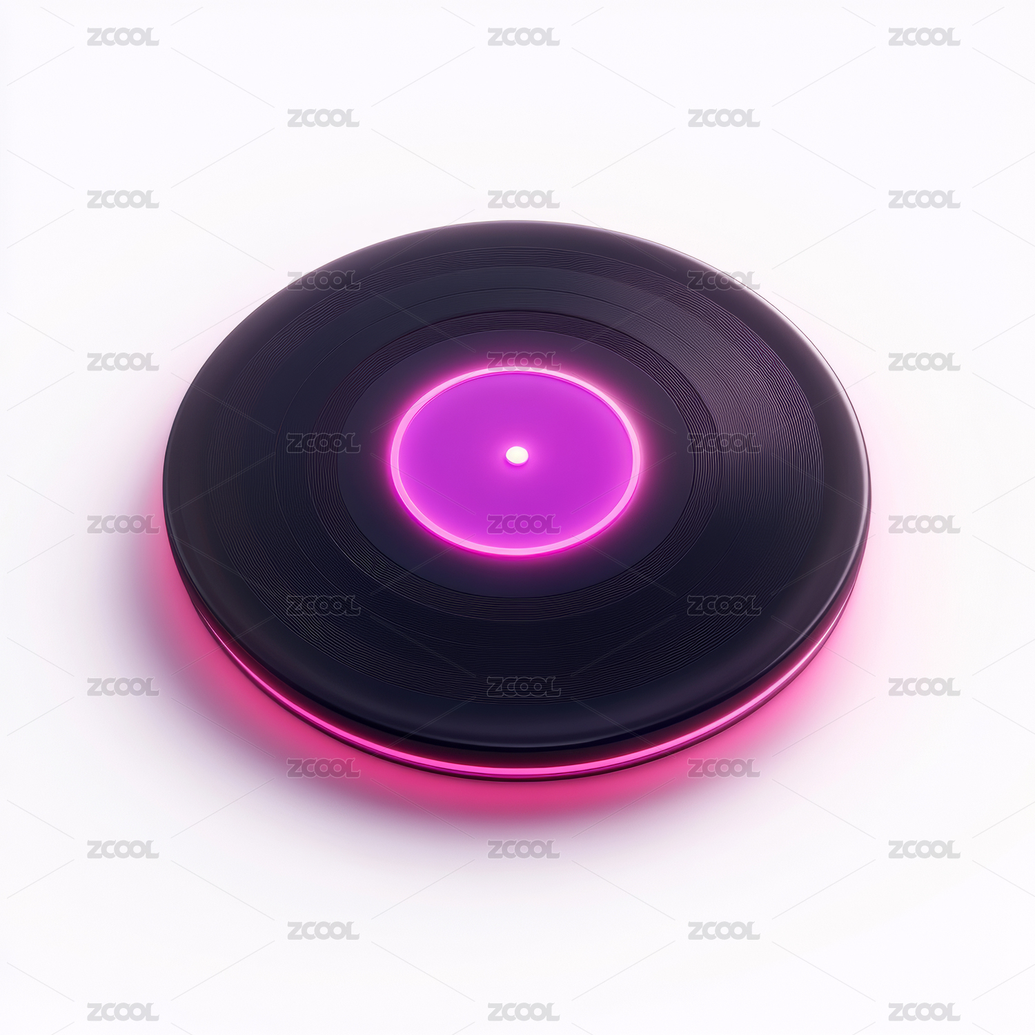 带有紫色霓虹光环的黑胶唱片图标