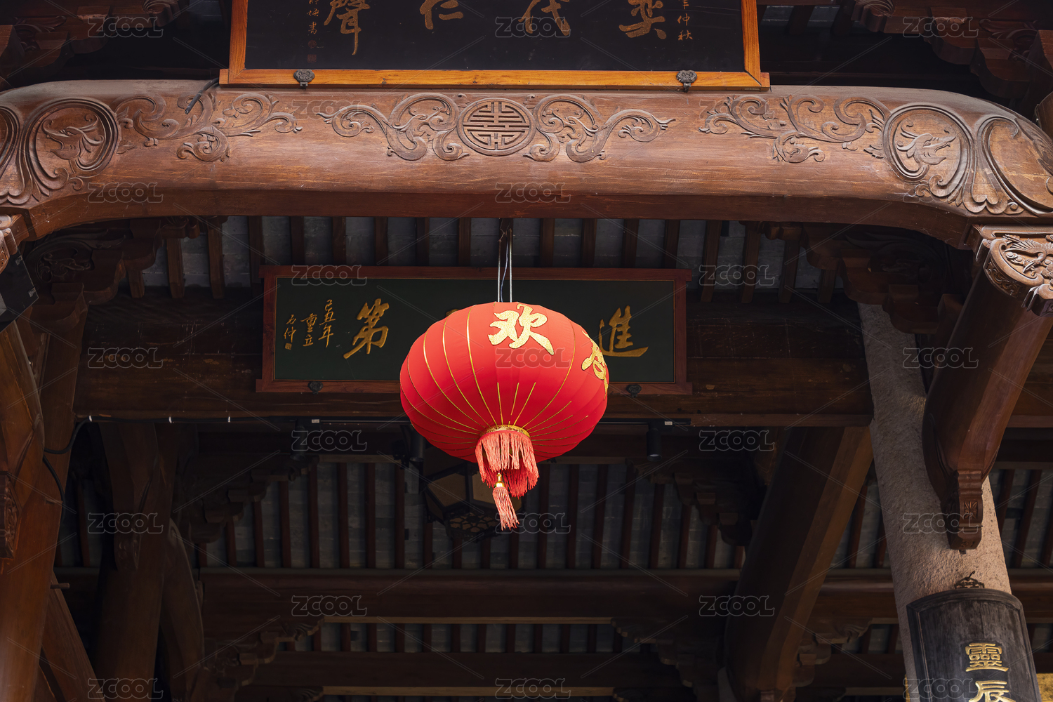 福建龙岩长汀县卧龙书院古建筑中的红色灯笼