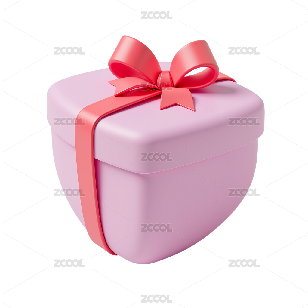3D渲染的渐变粉色紫色爱心礼盒情人节促销