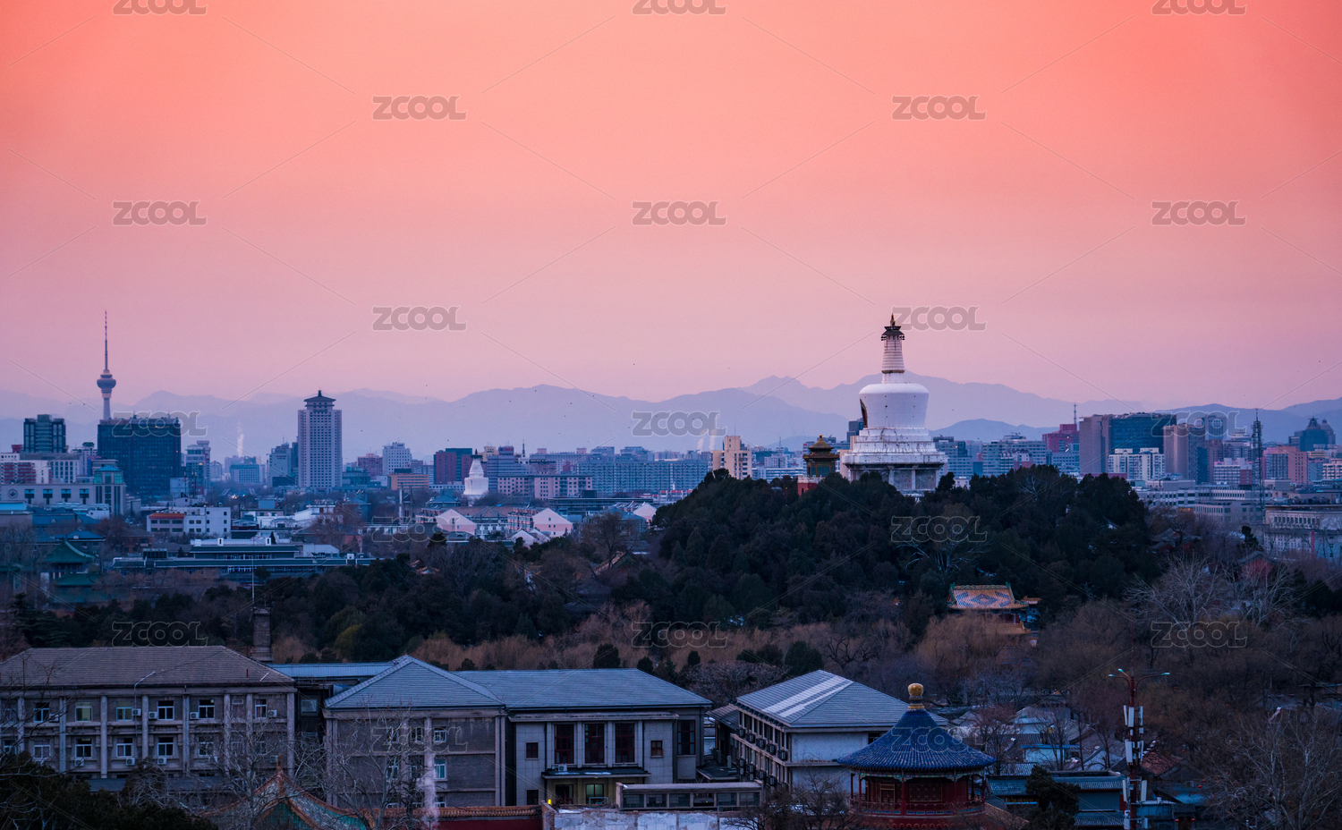 北京景山公园视角拍摄北海公园白塔