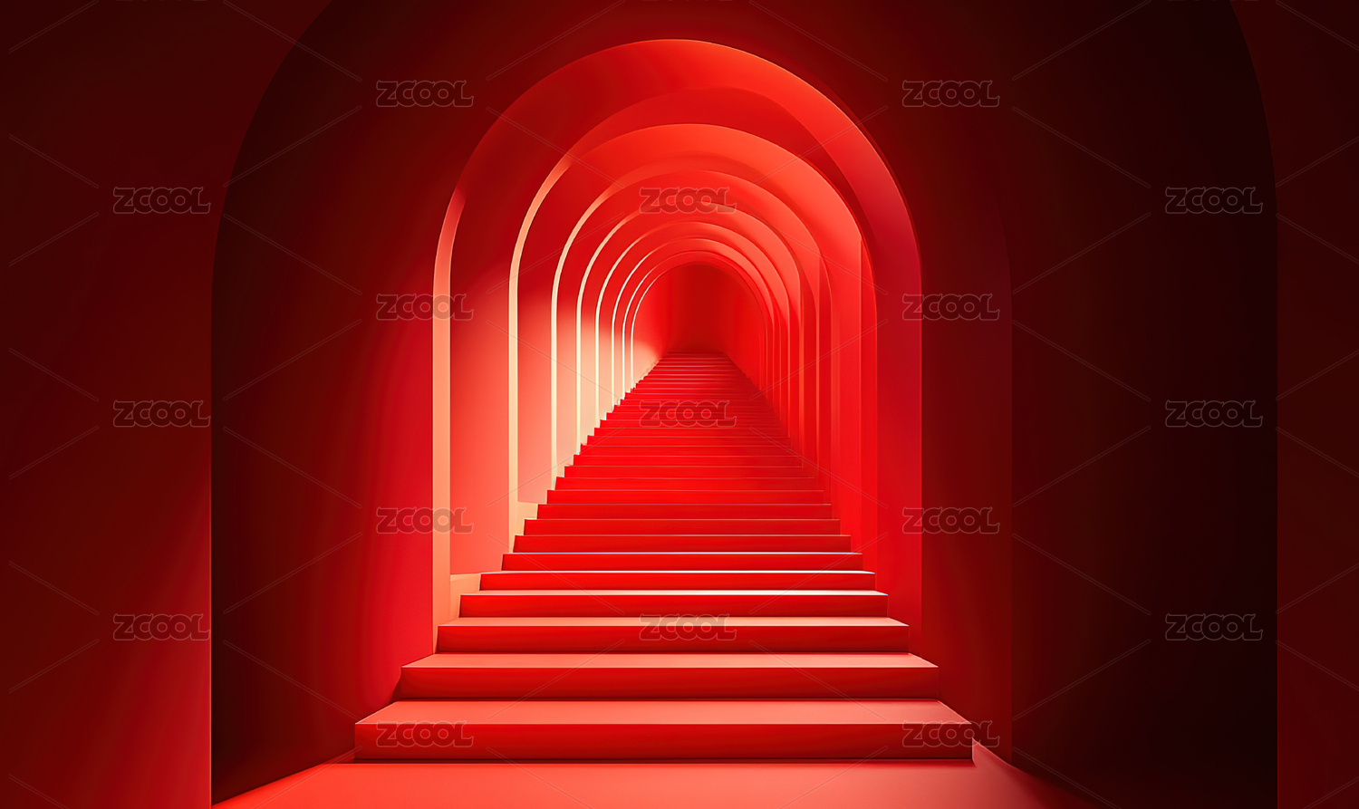 红色背景下的红色走廊