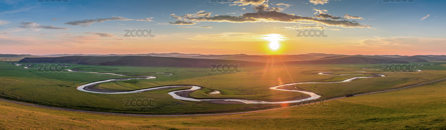 莫日格勒河,莫尔格勒河,河流,九曲十八弯,弯曲,蜿蜒,草原,夏季,夏天,日落