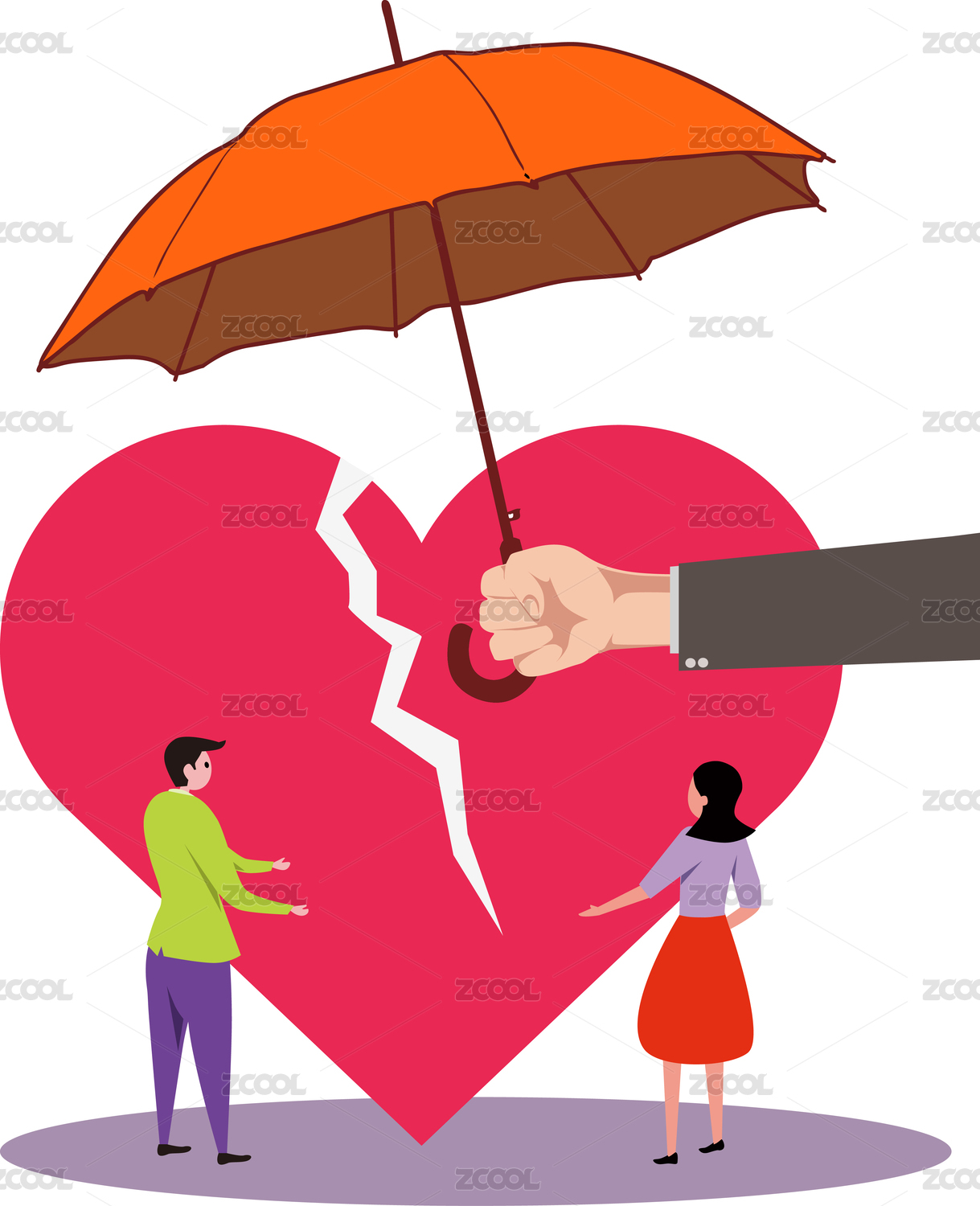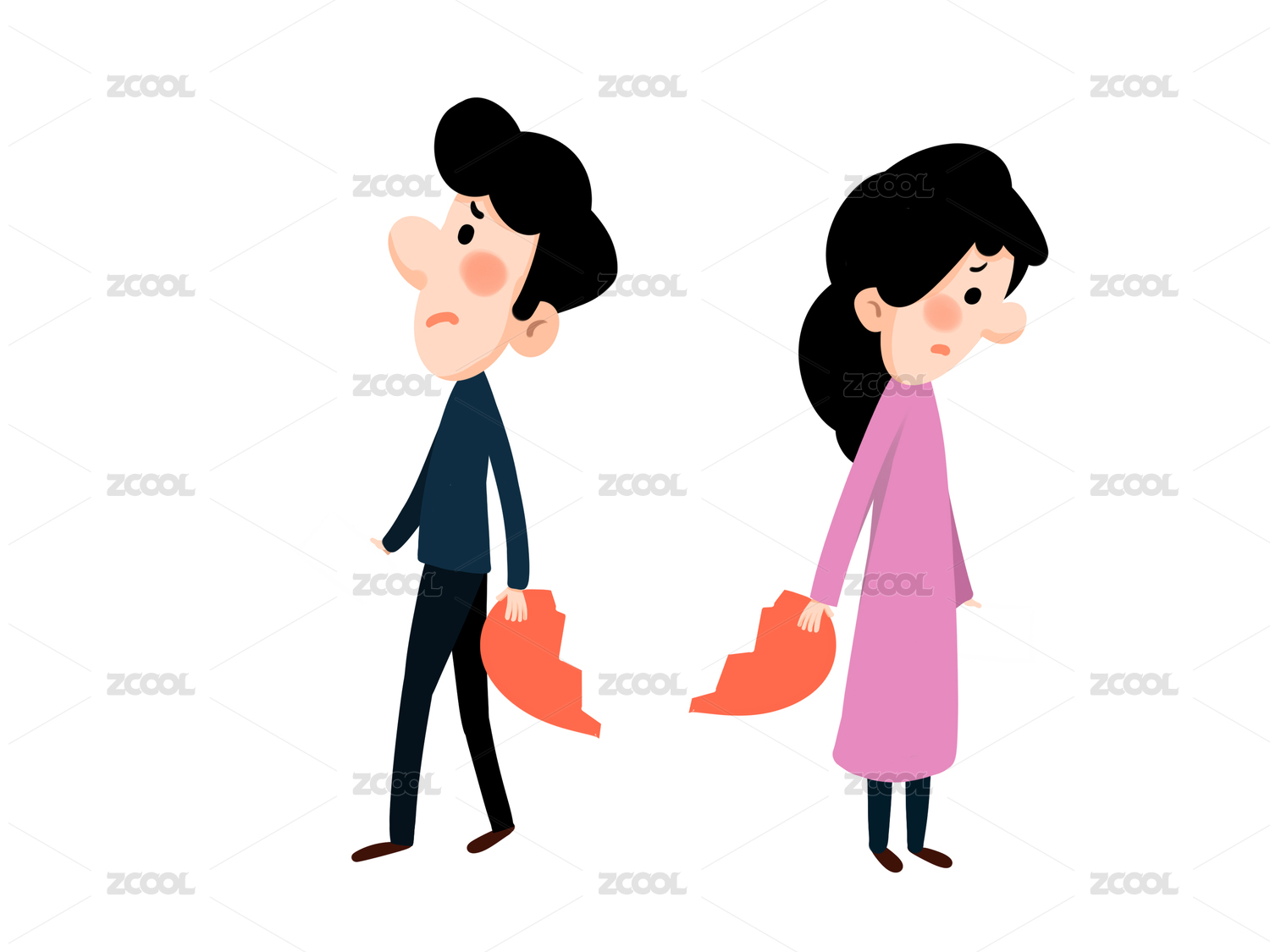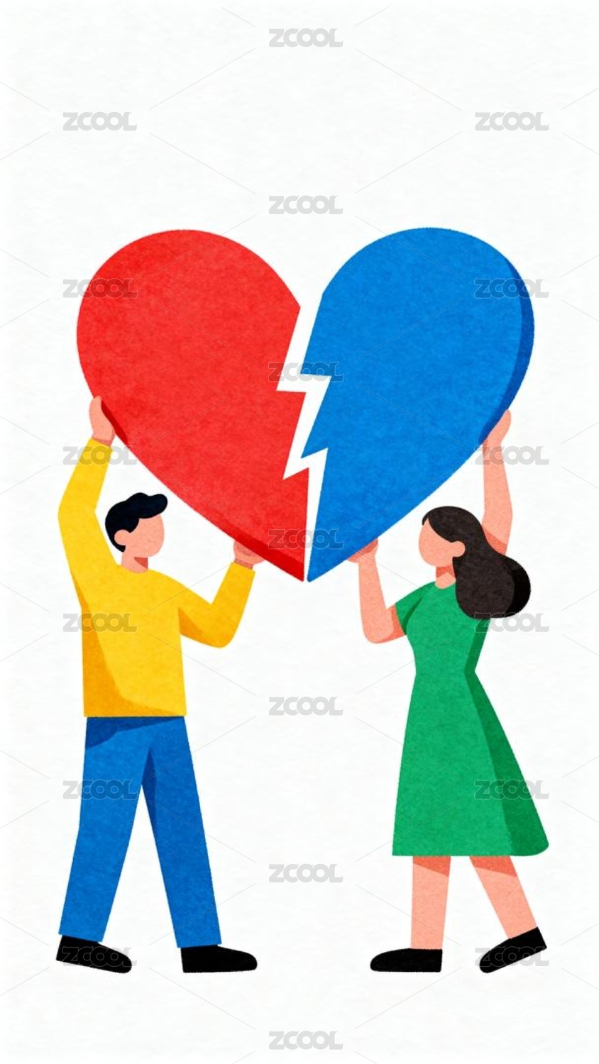 离婚夫妻离婚心碎桃心破损