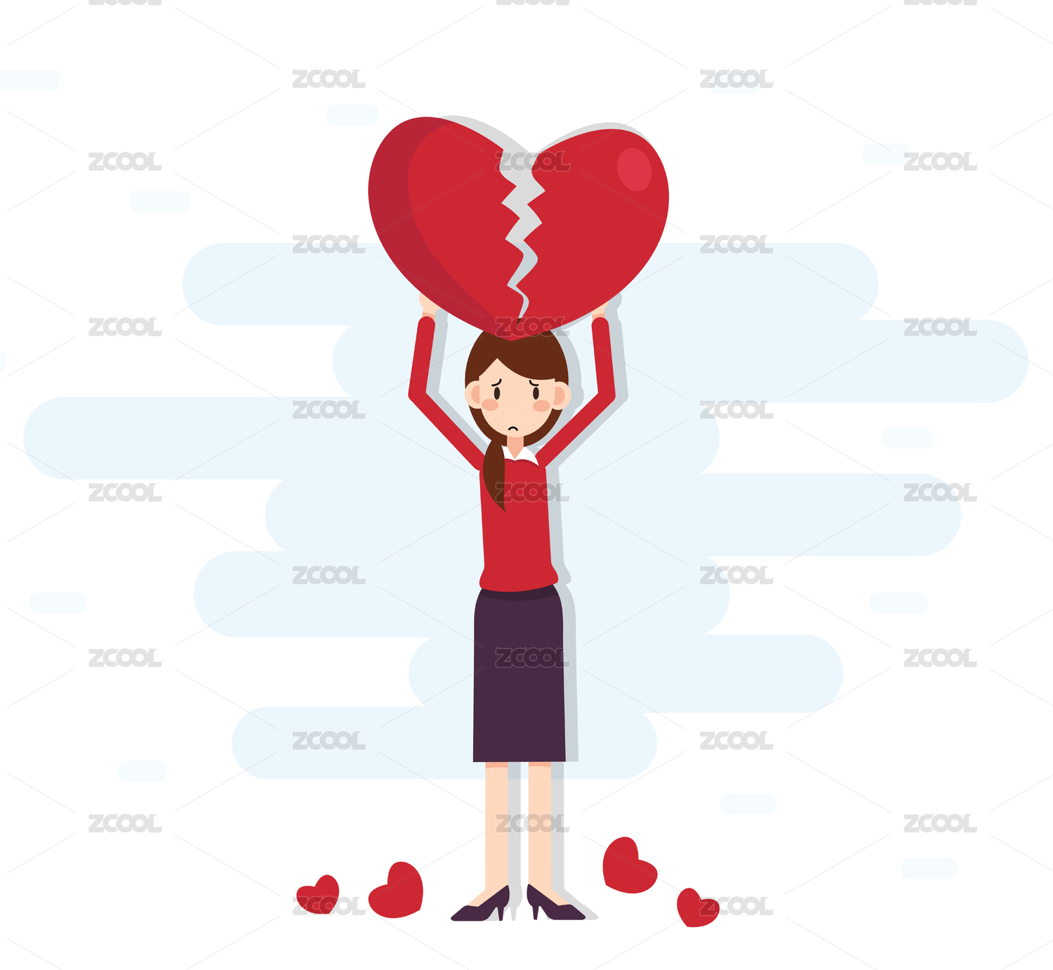 矢量商务职业女性女孩心碎了