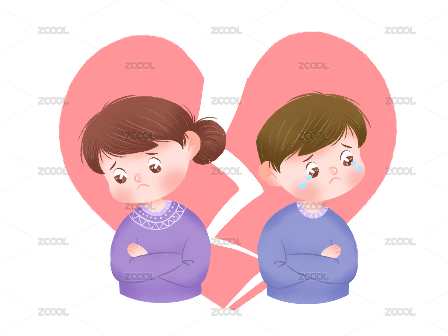 插画-分手离婚的情侣
