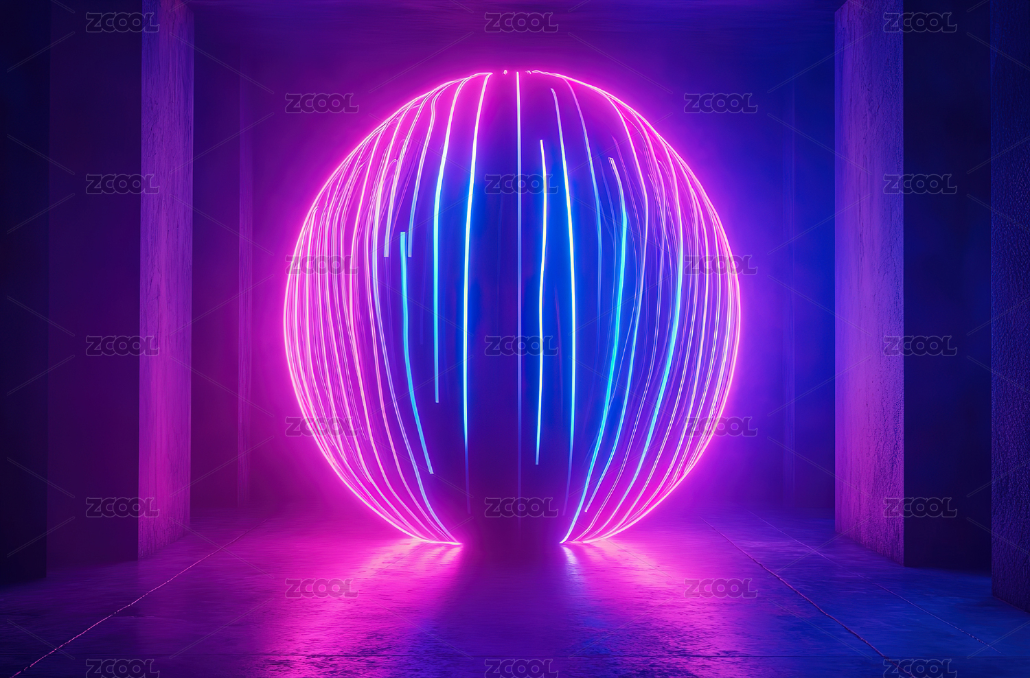 霓虹拱门下的悬浮球体