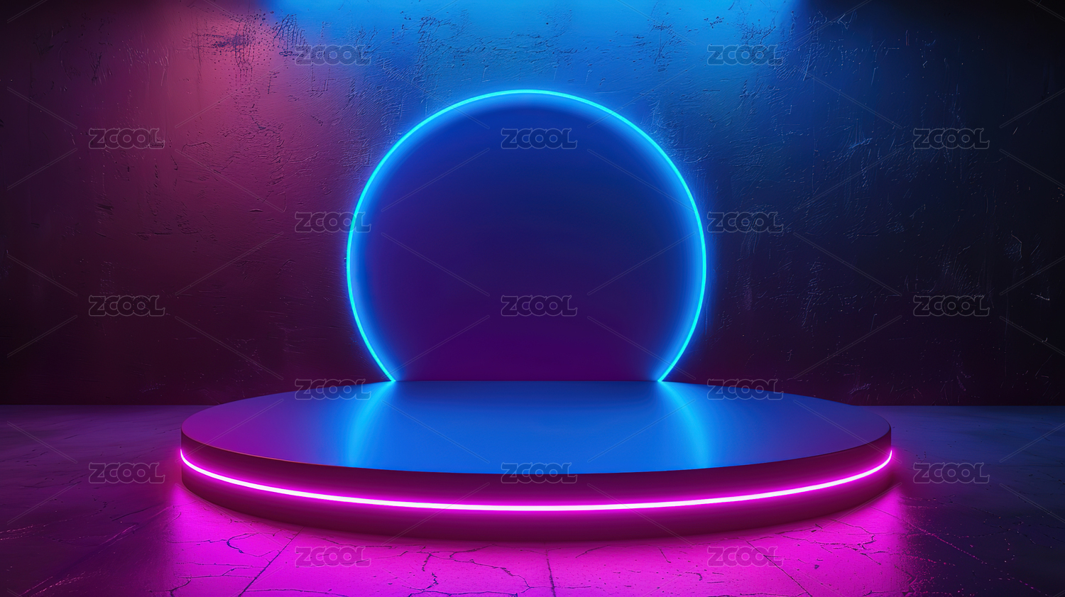室内霓虹灯与展示台3D渲染