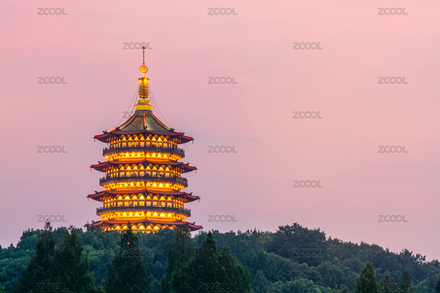 浙江杭州西湖标志性建筑雷峰塔夜景