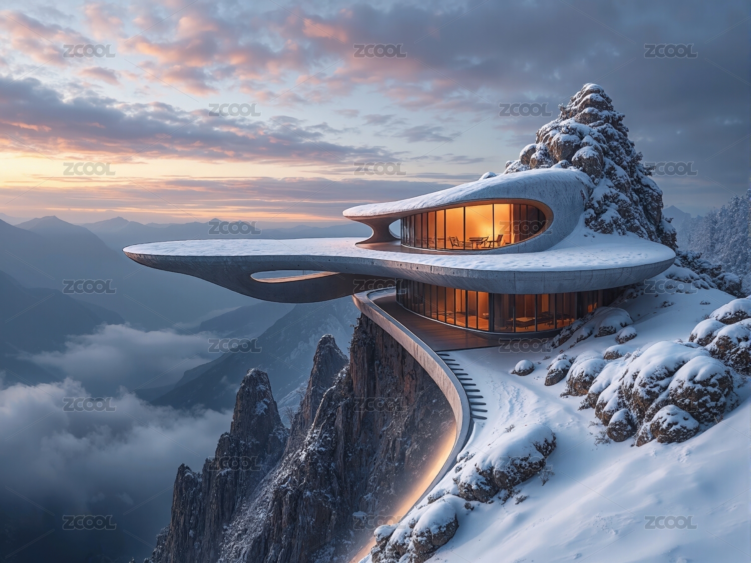 雪山上的未来感建筑