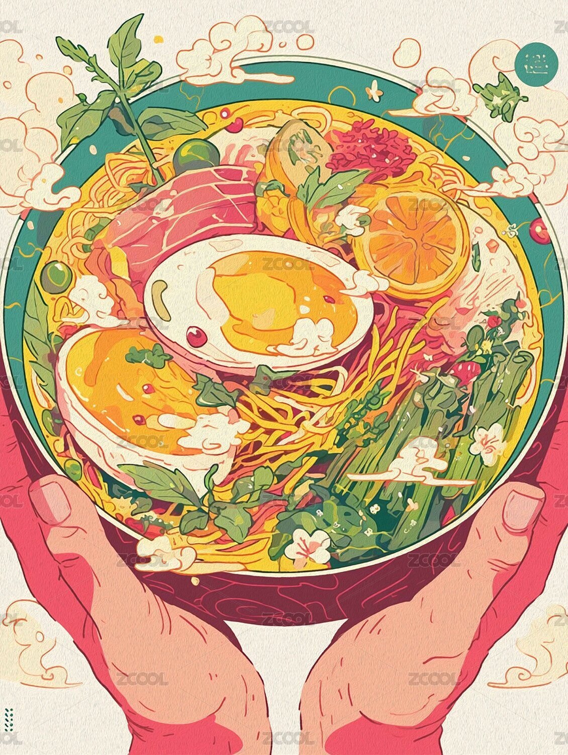 美食,食物,食品,饮食,面条,汤面,鸡蛋,插画,包装,艺术