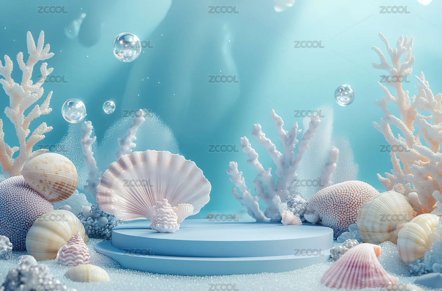 海洋主题清新电商展台3d水晶质感背景