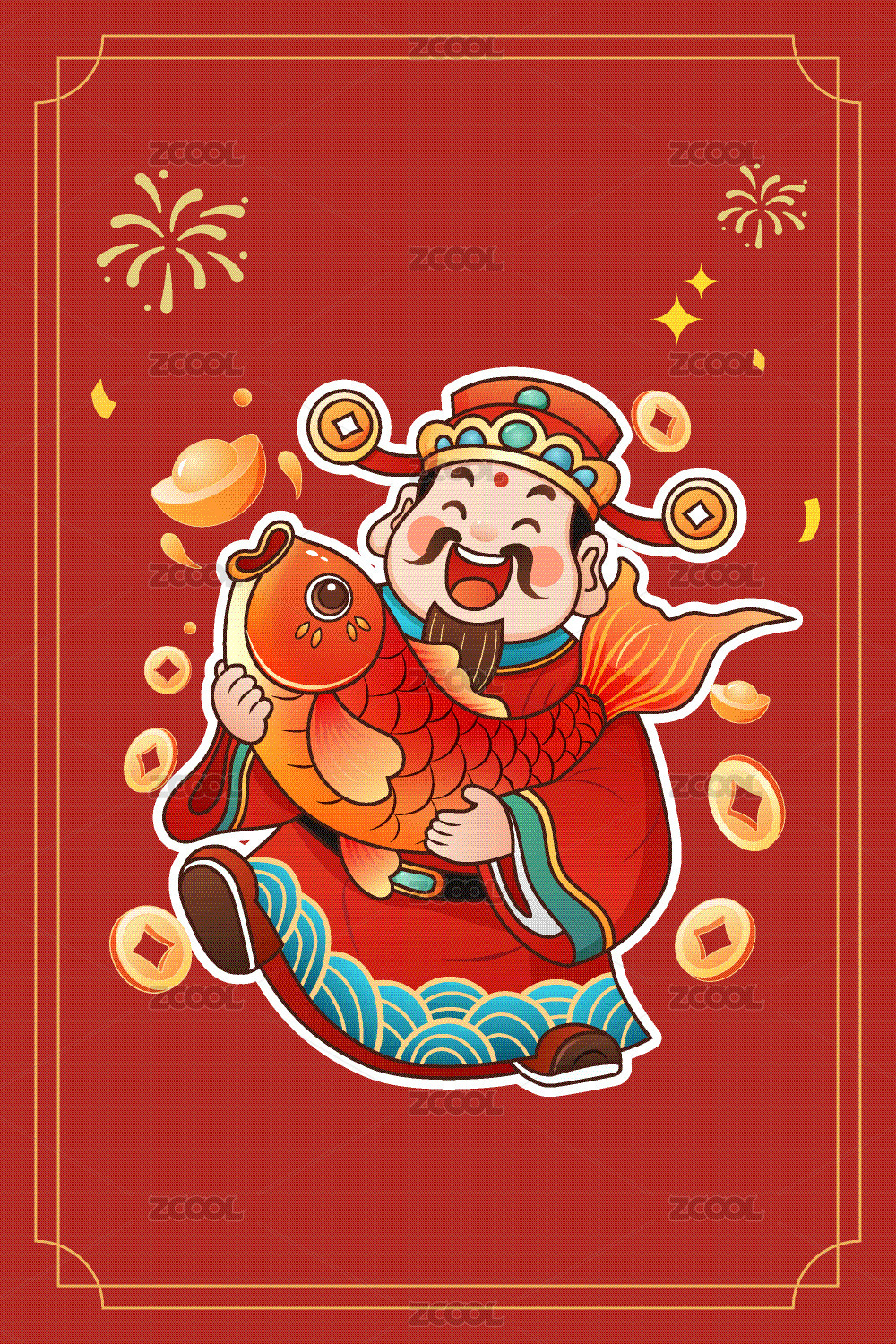 矢量,新年,锦鲤,发财,灯笼,浪花,元宝,年会