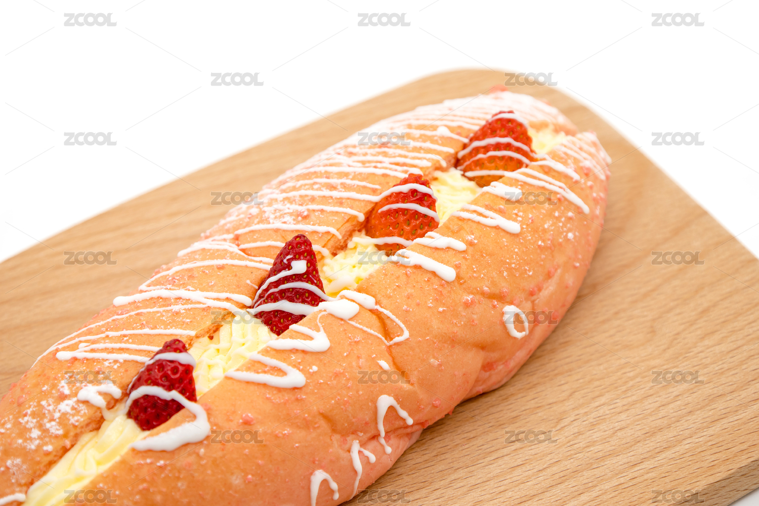 白色背景下的奶油草莓夹心面包