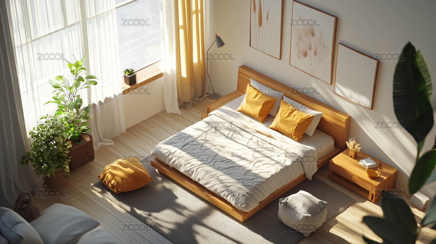 温暖,简约,三维,立体,3D,室内设计,卧室,日式,极简,现代