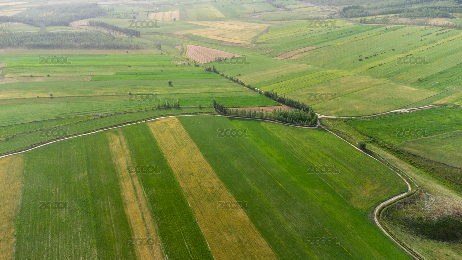 中国新疆伊犁昭苏县油菜花田野航拍风光