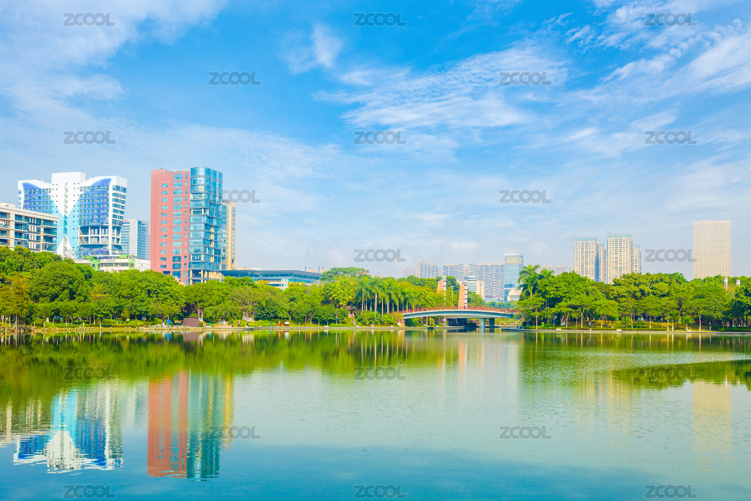 广东深圳罗湖区洪湖公园城市景观