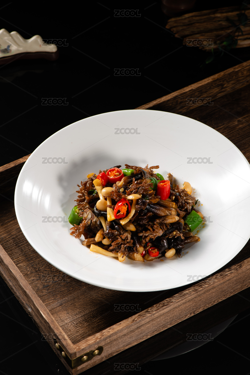 桌面上的盘子里的美味可口的凉拌木耳丝