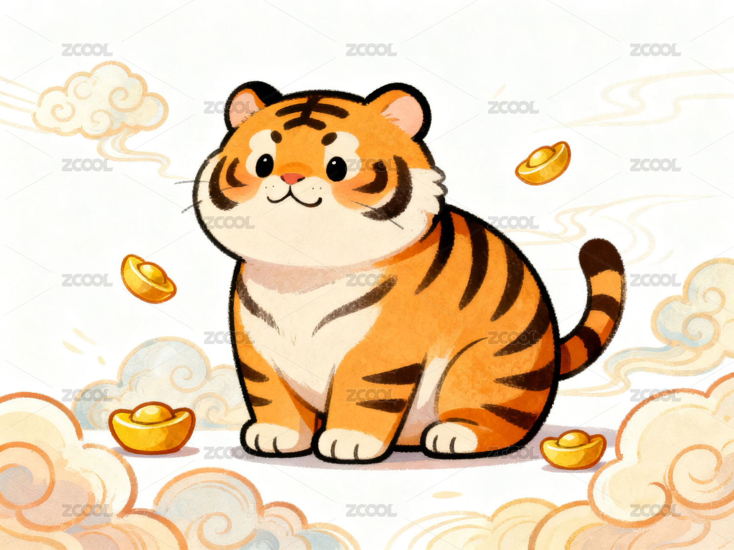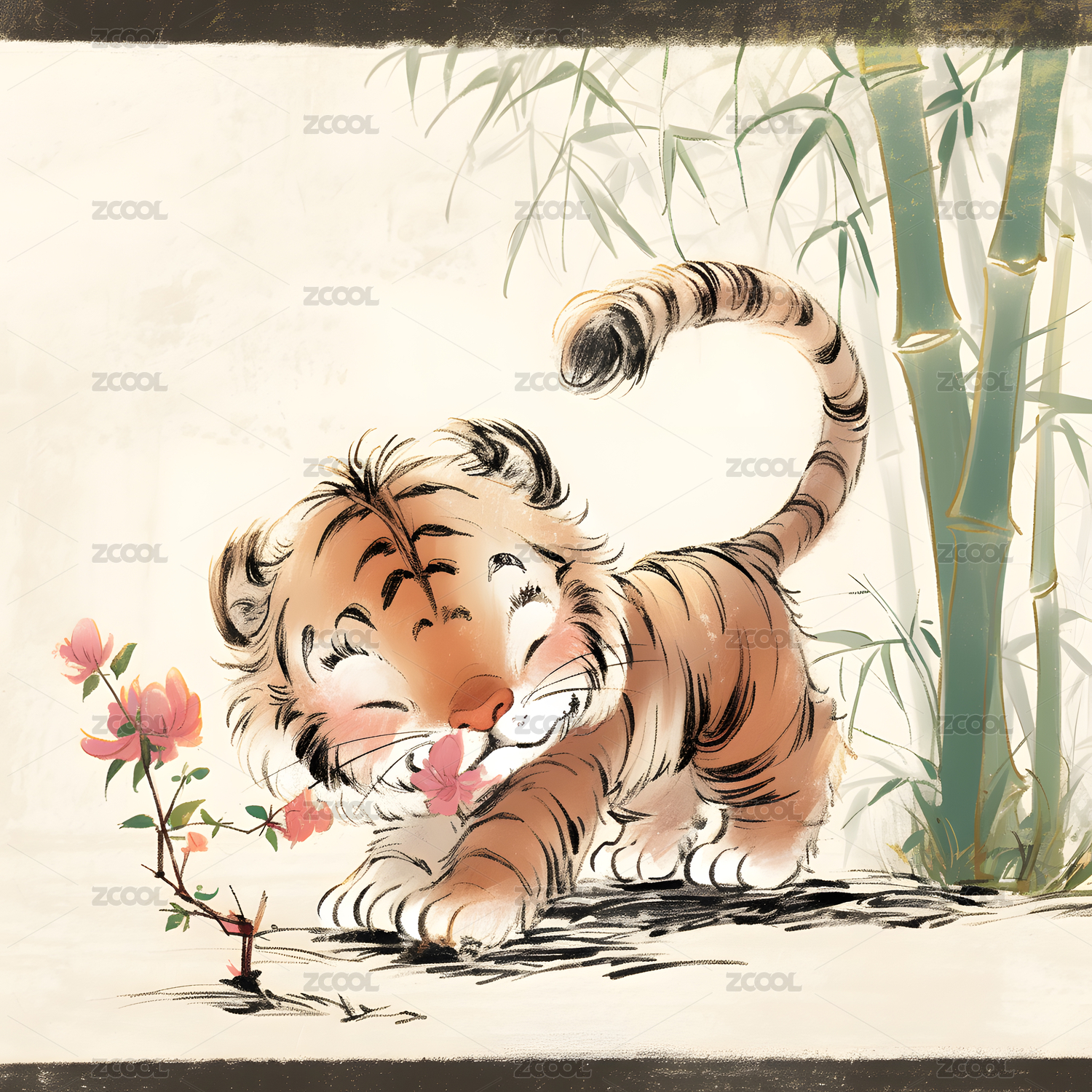 HEVCSF2022,插画,绘画,中国风,国潮,虎年,2022,虎,十二生肖,成语