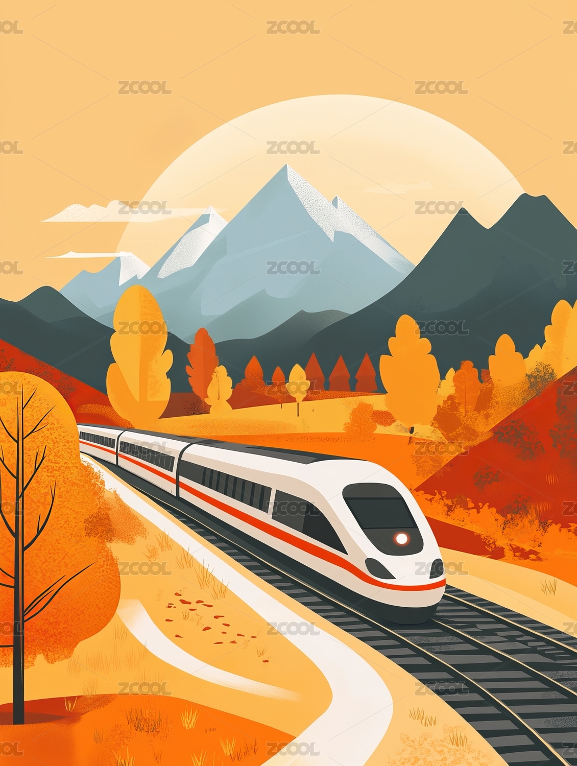 天空,景观,旅行,旅游,火车,回家,秋天,背景,插画,山谷