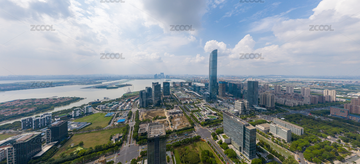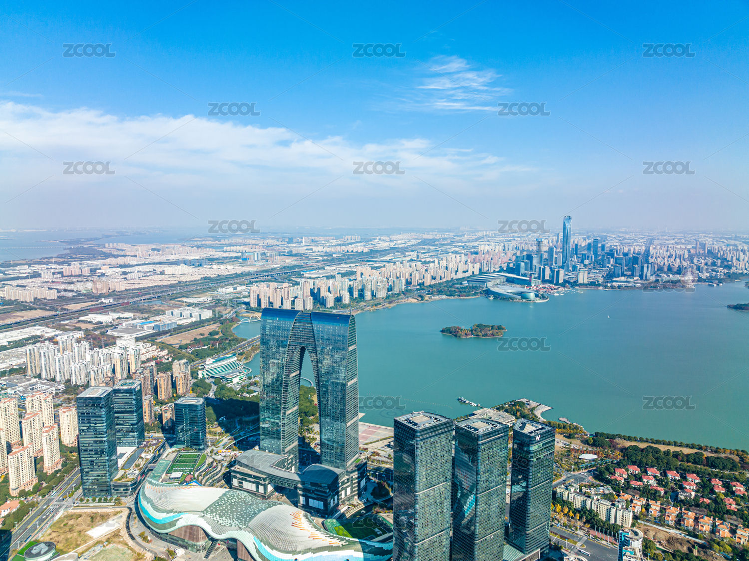 中国江苏苏州金鸡湖CBD城市航拍风光