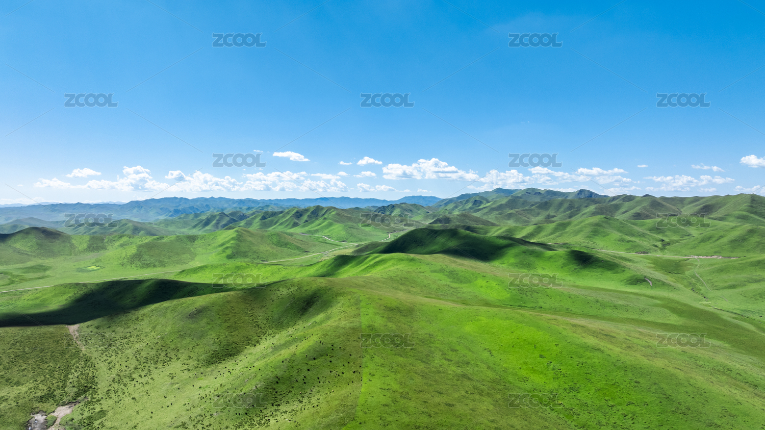 航拍蓝天白云阳光下的甘肃省甘南州甘南草原