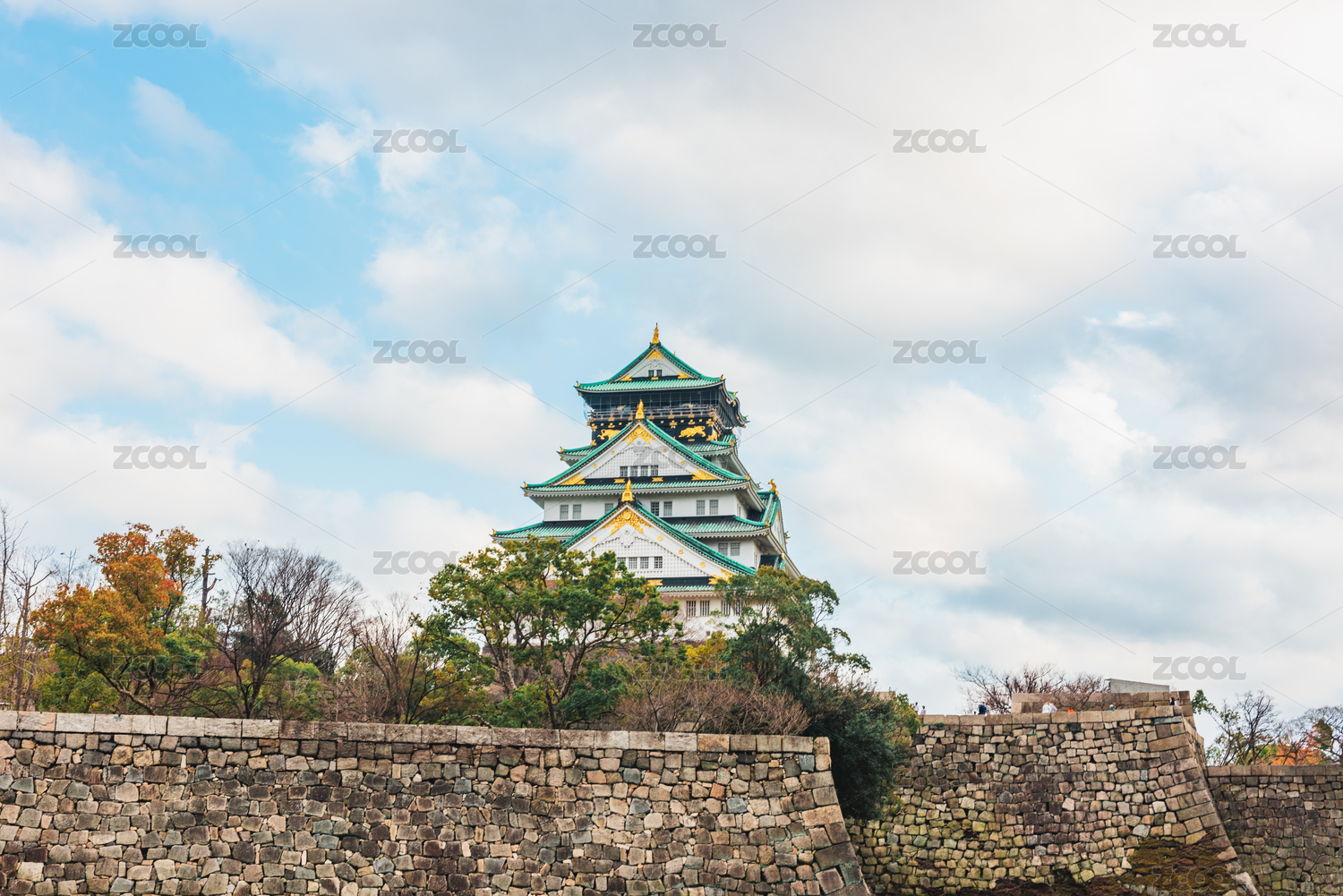 大阪,大阪城公园,日式景观,日式园林,传统建筑,世界遗产,文化遗产,秋天,红叶,红叶狩