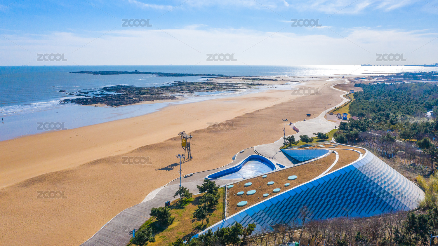 清晨的海边风景宜人,游客踏浪嬉水乐享假期