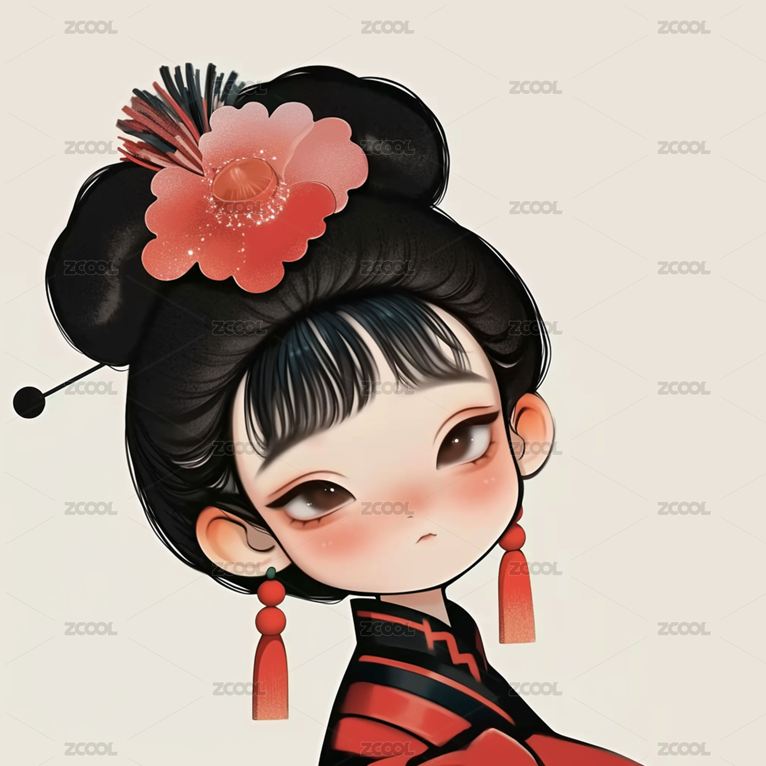 卡通Q版唐宋侍女图古风人物影视海报插画