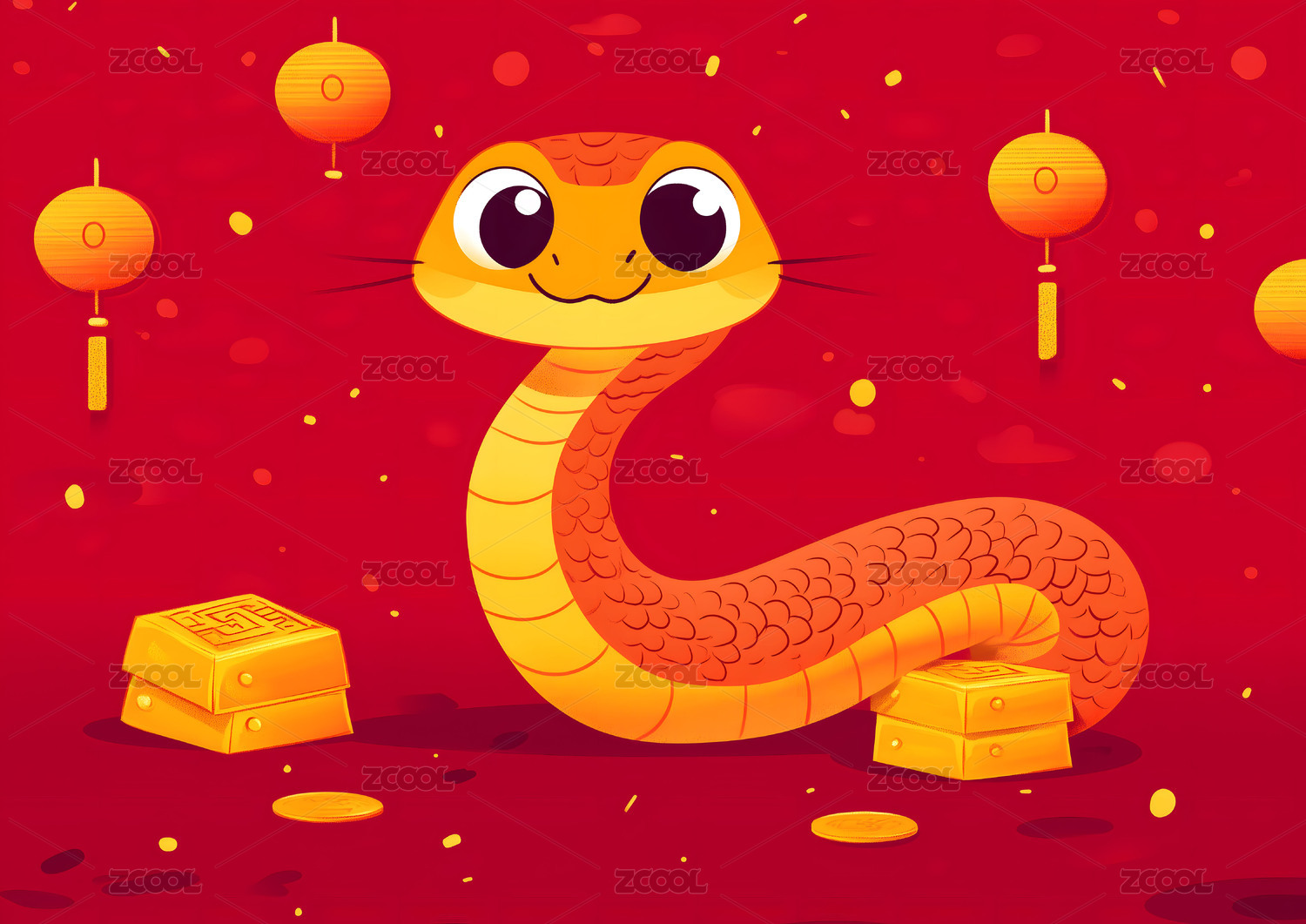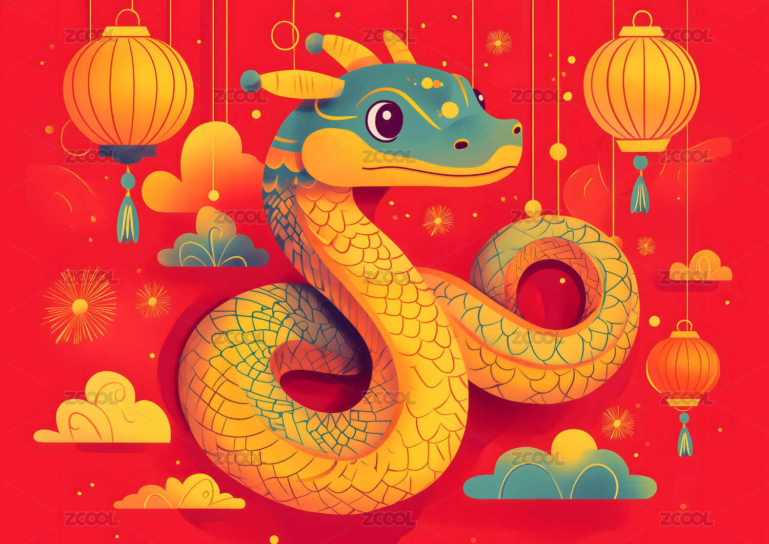 2025年蛇年生肖蛇春节贺岁插画