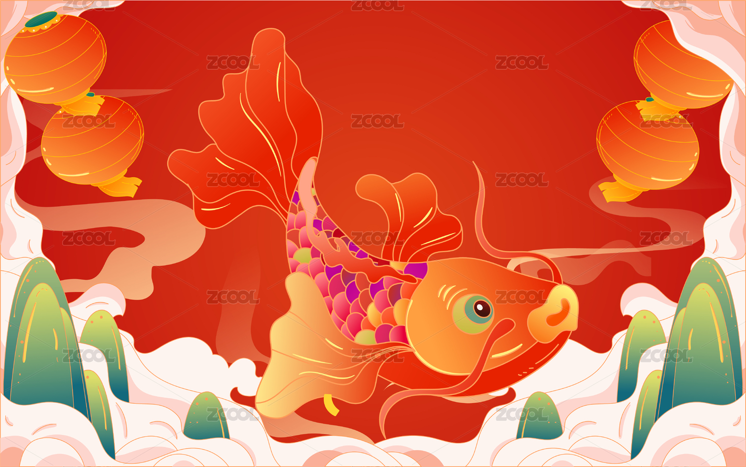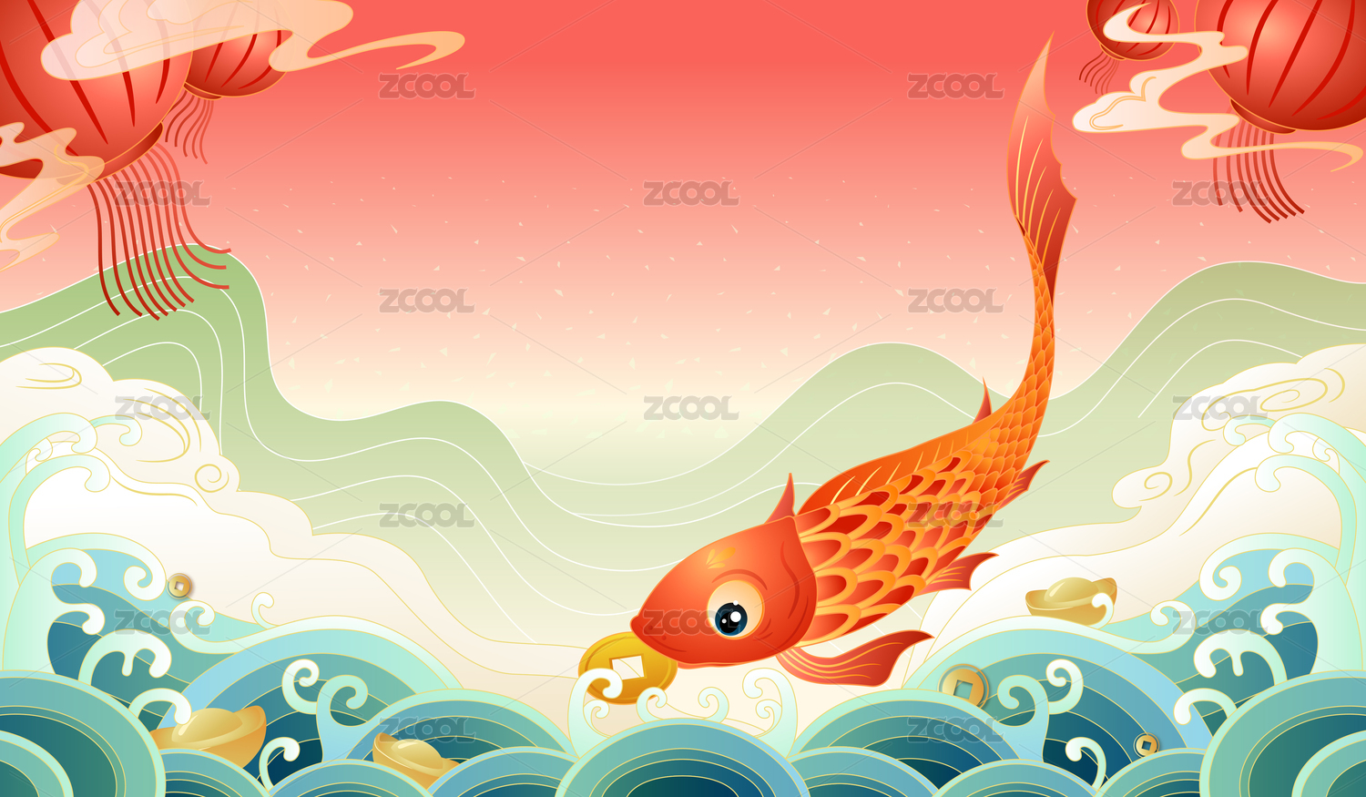 中国风,背景,插画,锦鲤,鲤鱼,新年,2021,喜庆,HEZODIAC2021,除夕