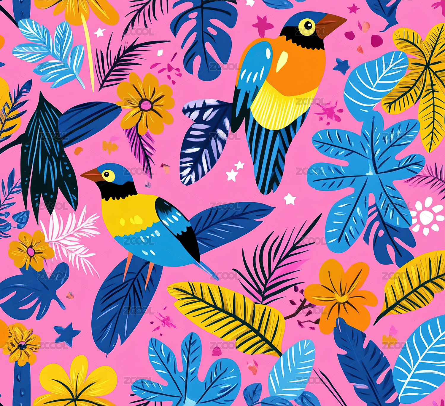鹦鹉,花卉,植物,龟背叶,芭蕉叶,插画